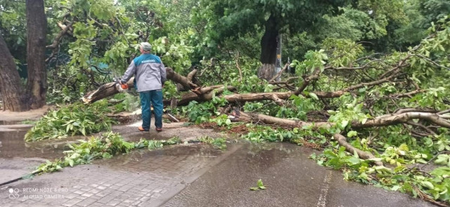 У результаті стихії багато вулиць затопило, деякі райони міста залишилися без світла, повалені десятки дерев.