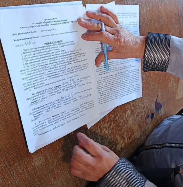 Настоятель храму розповів, що на попередньому голосуванні з присутніх 289 людей 175 проголосували за перехід до ПЦУ, 111 були проти.«Кажуть, що якісь списки зникли! Мені це невідомо. Збори було проведено за чинним законодавством, і для переходу не вистачило голосів. Сьогодні збори є безчинні, поза межами законодавства. Щоб провести другі збори, то перші треба оскаржити відповідно до чинного законодавства», – сказав настоятель.У підсумку повторних голосувань із 208 людей, які зареєструвалися на зборах, перехід до ПЦУ підтримали всі, розповіла представниця лічильної комісії Наталія Заремба.«Тобто одноголосно із загальної кількості зареєстрованих людей. Ми живемо в Україні, ми хочемо українську церкву. Ми хочемо співати українською мовою», – зазначила членкиня комісії.Після оголошення результатів голосувань на збори приїхав настоятель храму із сусіднього села Олика отець Ігор Літвінцов. З його слів, це найближчий храм Православної церкви України до села Метельне. Прийшов, щоб допомогти громаді юридично завершити процес переходу до ПЦУ.«Маємо їхати завтра-післязавтра до владики, просити новий статут, готувати нову документацію на реєстрацію в обласну раду. Будуть нові документи, зможемо щось пред’явити, а зараз ми на храм нічого не можемо пред’явити», – додав священник.
