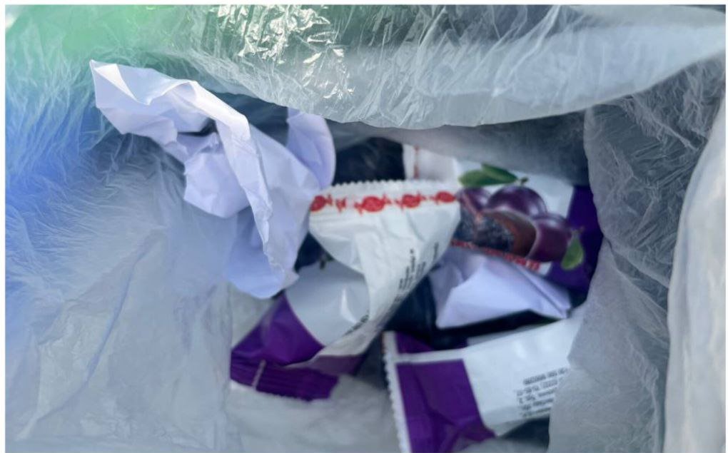 Ще одна історія трапилася, коли інспектори патрулювали вулицею На Таборищі. Там в поле зору поліцейських теж потрапив громадянин, який помітно нервував. Під час поверхневої перевірки у нього знайшли торбинку з цукерками, серед яких були паперові згортки з зеленою речовиною рослинного походження.