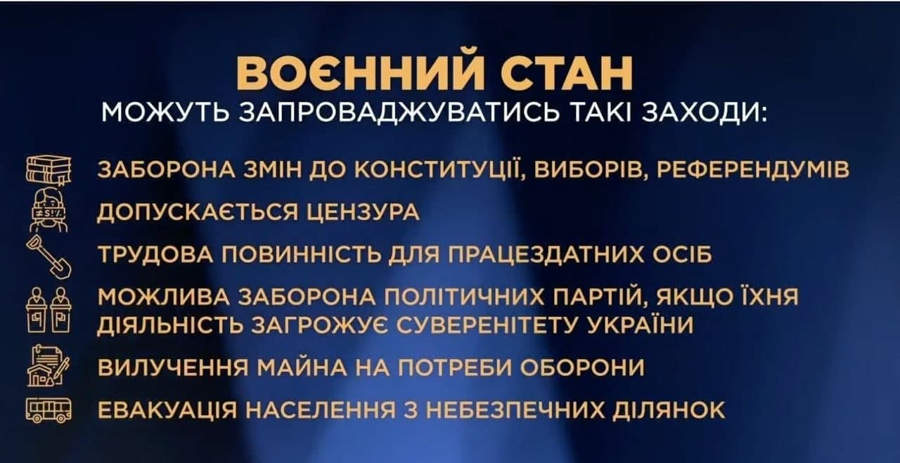 В зв'язку з цим Президент України Володимир Зеленський оголосив про запровадження на всій території України воєнного стану.
