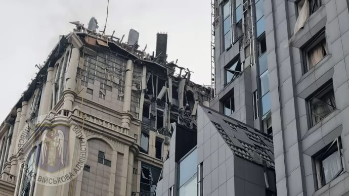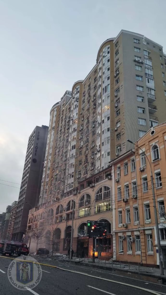«Сьогодні близько 07:00 ранку збройні сили РФ нанесли комбінований ракетний удар по Києву. Ймовірно, ворог застосував аеробалістичні ракети «Кинджал» з бортів МіГ-31К та балістичні ракети типу Іскандер/KN-23. Внаслідок цього удару зафіксовано падіння уламків в 3-х районах міста».Зокрема, у Голосіївському районі пошкоджені офісна будівля, дорожнє покриття та газова труба з подальшою розгерметизацією; загорілося 5 автомобілів. За попередніми даними, одна людина загинула, ще одна отримала поранення. Інформація уточнюється.