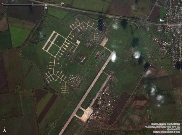 Управління стратегічних комунікацій оприлюднило супутникові знімки, на яких видно, що з аеродрому у Чорнобаївці рашисти вивели всю свою техніку.