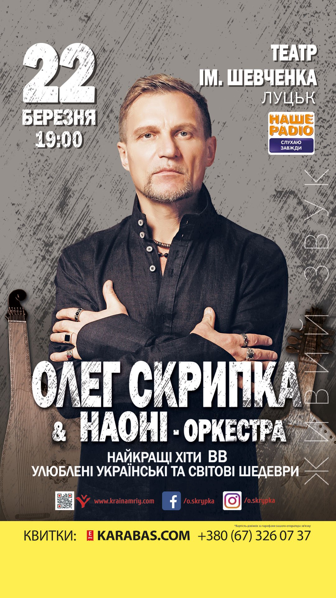 Олег Скрипка заспіває у супроводі Національного оркестру народних інструментів (НАОНІ) у Луцьку.