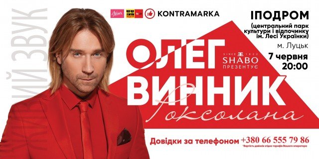 Івент-агенція «Tikhonov сoncert and event agency» обіцяє лучанам запальне концертне літо, яке розпочнеться з суперконцерту Олега Винника на «Іподромі» (Центральний парк культури і відпочинку імені Лесі Українки) 7 червня.