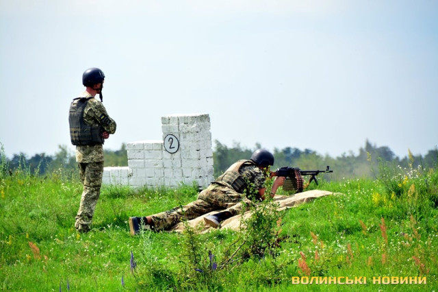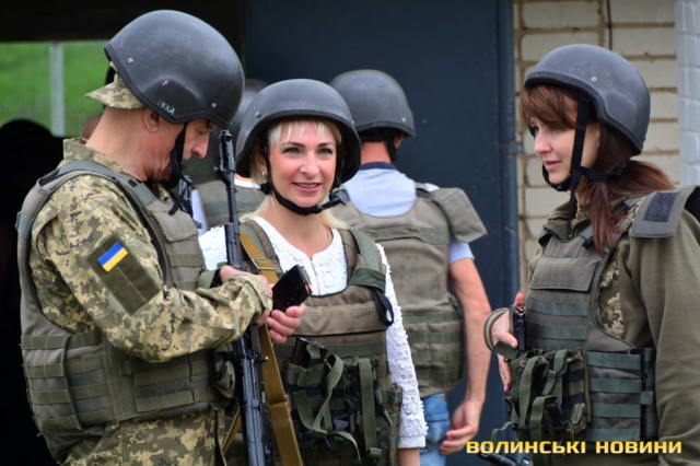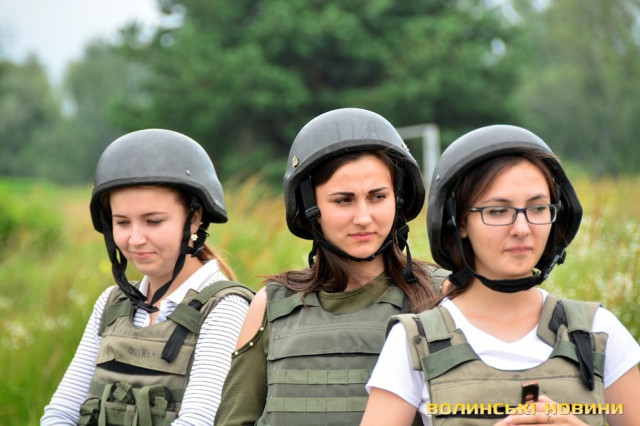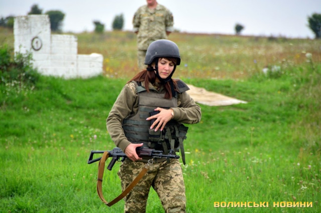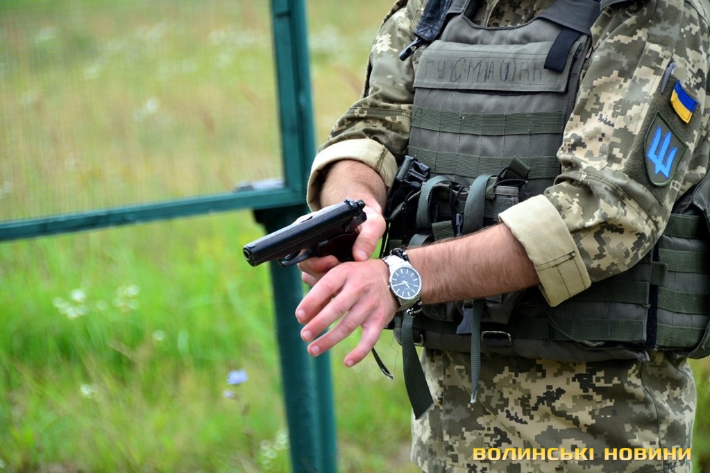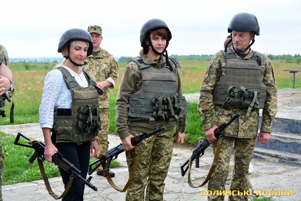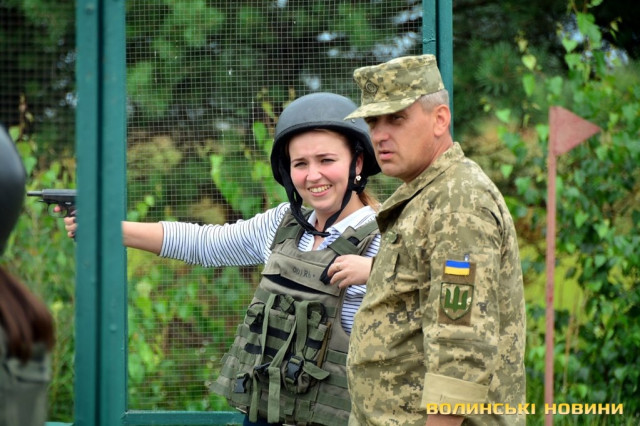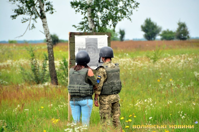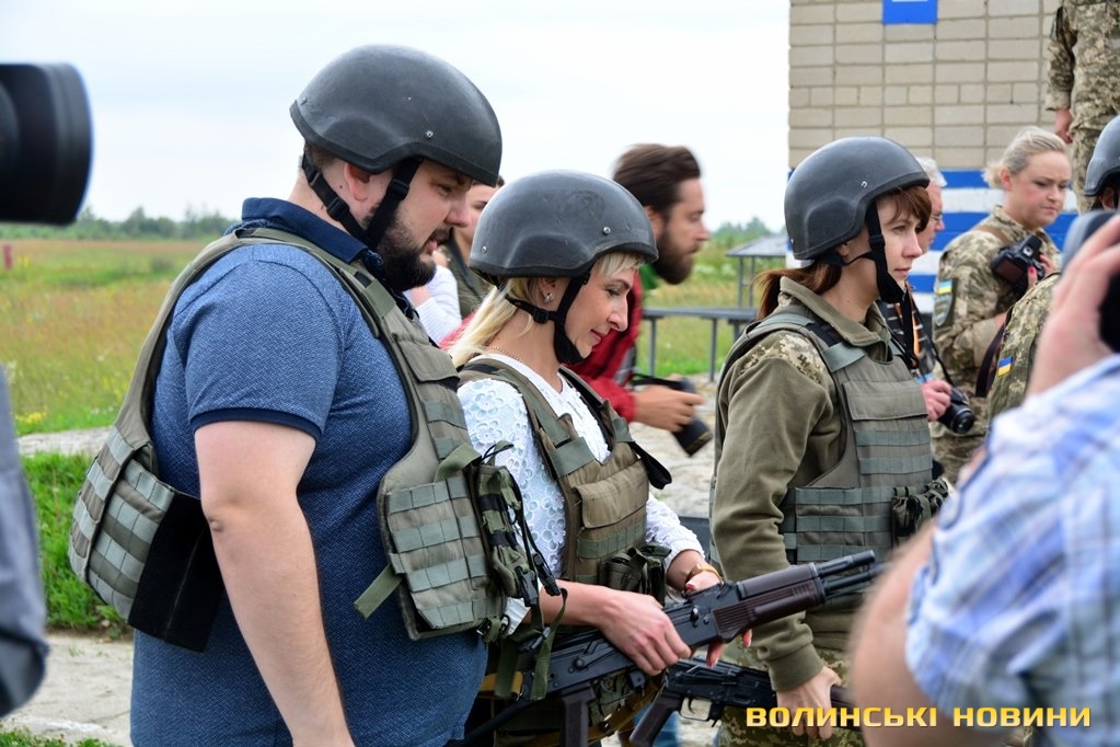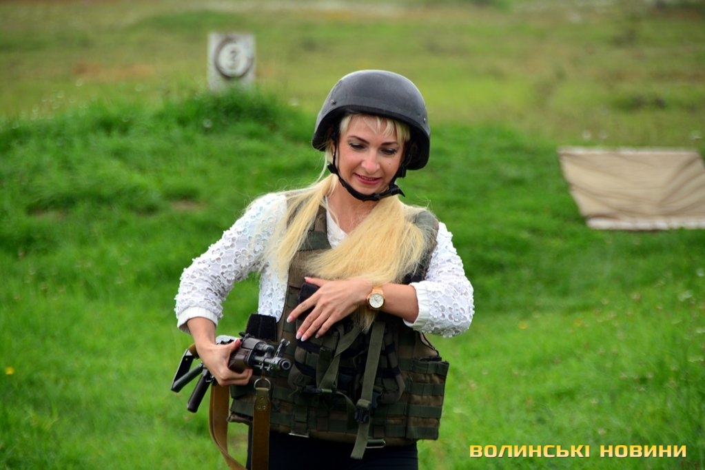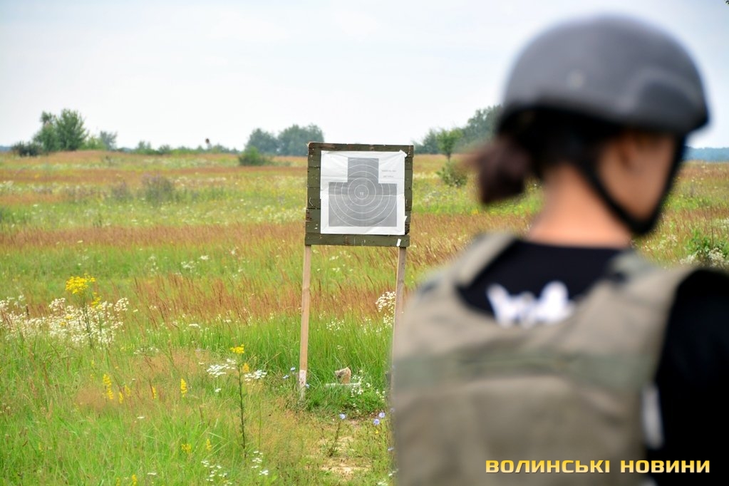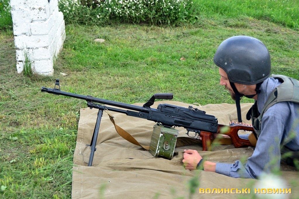 Спочатку волинських журналістів поділили на четвірки, а тоді вони змушені були надіти бронежилет та каску, і лише після цього вийшли на вогневий рубіж. Спочатку випробували стрільбу з АК-74 – кожному давався «ріжок» з двадцятьма патронами, аби влучити у рухомі цілі.Наступним видом зброї став пістолет Макарова. Здавалося, що стріляти з пістолета простіше, тим більше, що тепер у ціль потрібно було потрапити зі значно меншої відстані, аніж з автоматичної зброї, однак на практиці сталося зовсім інше – чимало представників ЗМІ не «вибило» жодного балу.Напевно, останніх стрільб очікували найбільше, адже всі хотіли спробувати у дії ПКМ – кулемет Калашникова модернізований, принцип стрільби з якого дещо відрізняється від звичайного АК. Тож, отримавши стрічки з 20 патронів, журналісти очікували своєї черги, аби вистрілити кількома чергами.В підсумку, як зазначили військові, результати волинських журналістів не дуже високі, але вони наголосили, що для того, аби досягти певного результату, потрібні постійні тренування, щоб набути навички.