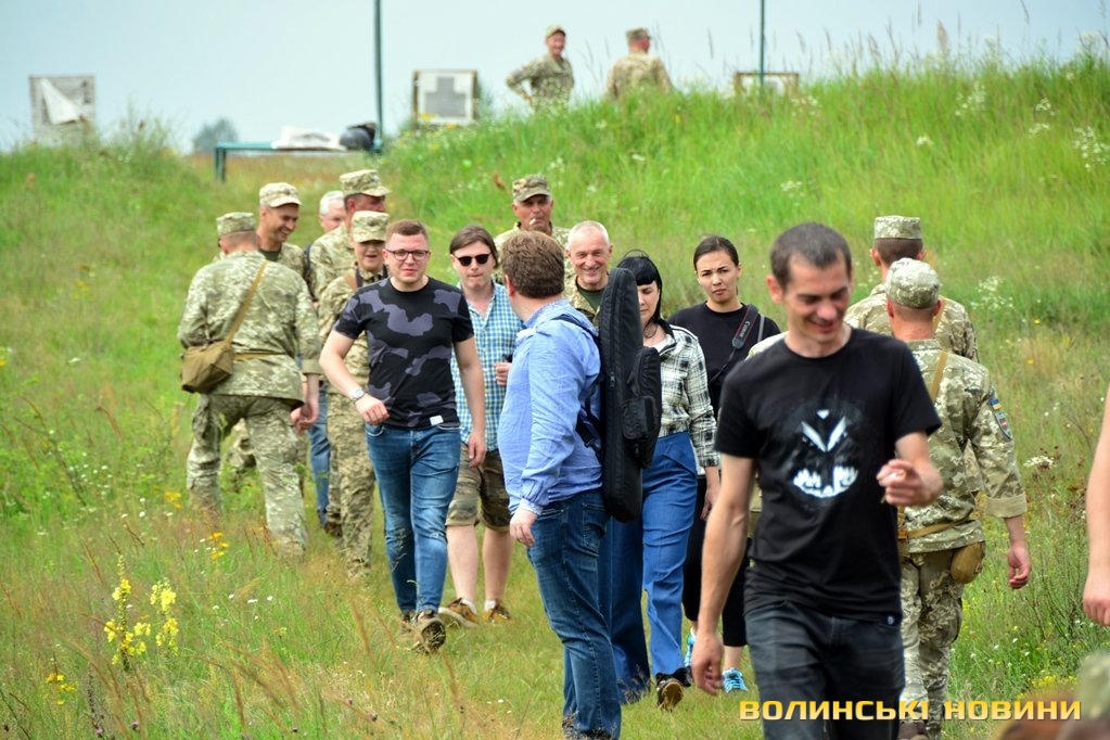 На полігон 14-тої окремої механізованої з журналістами прибули голова Володимир-Волинської районної ради Роман Гук, голова Володимир-Волинської районної державної адміністрації Наталія Василець, міський голова Володимира-Волинського Петро Саганюк, а також військовий комісар Волинського обласного військомату Роман Кулик.