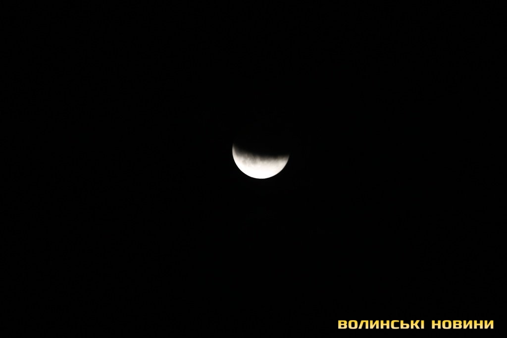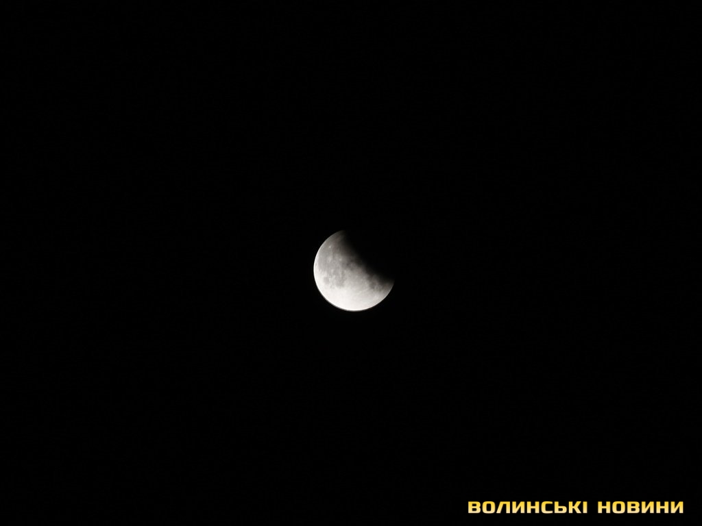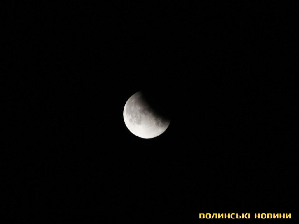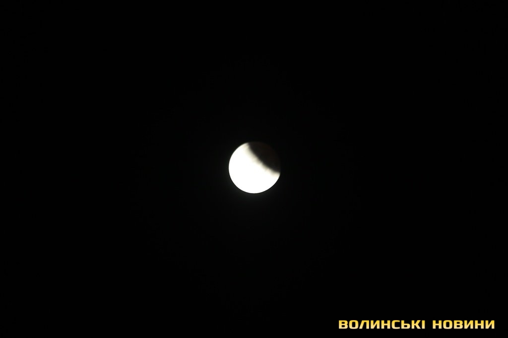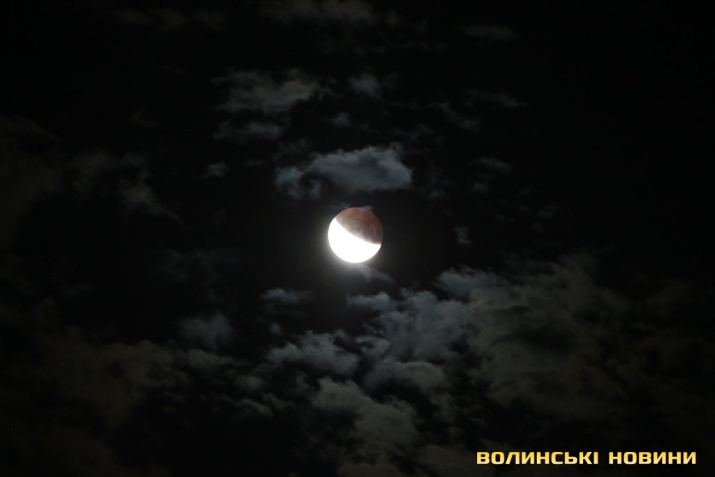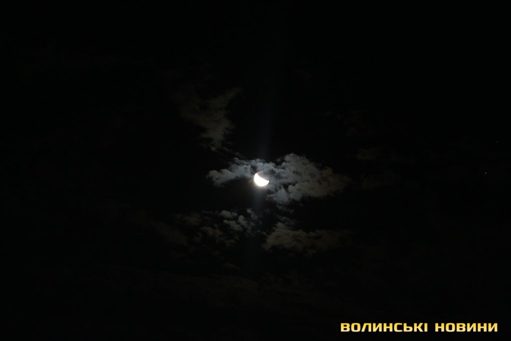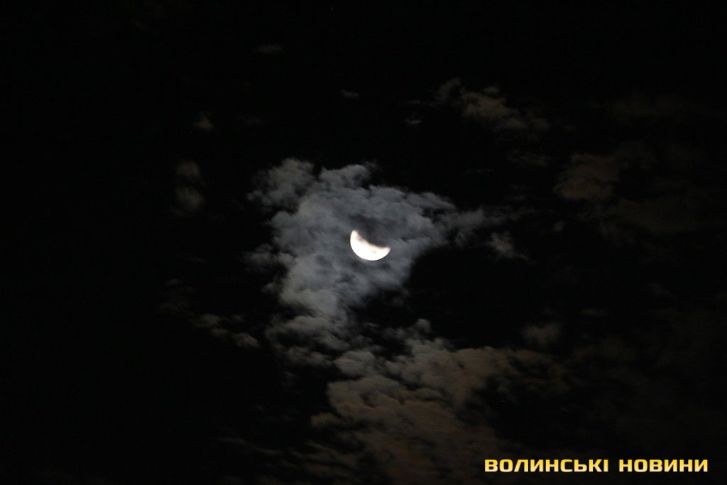 Простіше кажучи, відбулося часткове місячне затемнення, при якому місяць «укрився» тінню Землі на 65%. Унікальне природне явище було видно й над Луцьком. Увесь процес тривав 5 годин і 34 хвилини, і закінчився о 3:17.