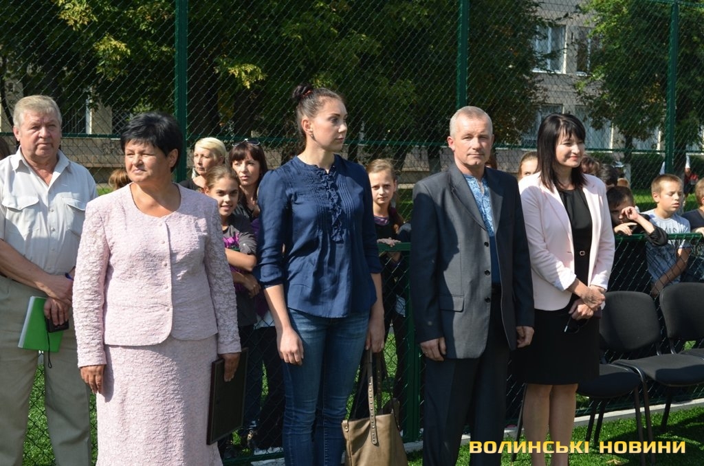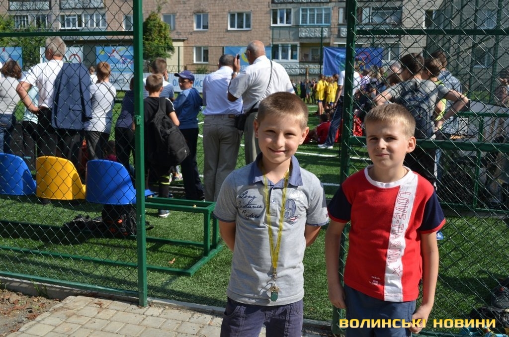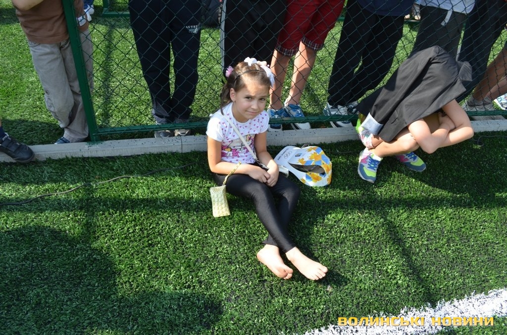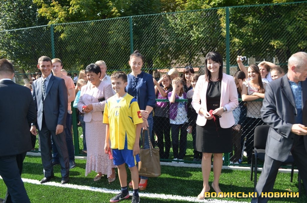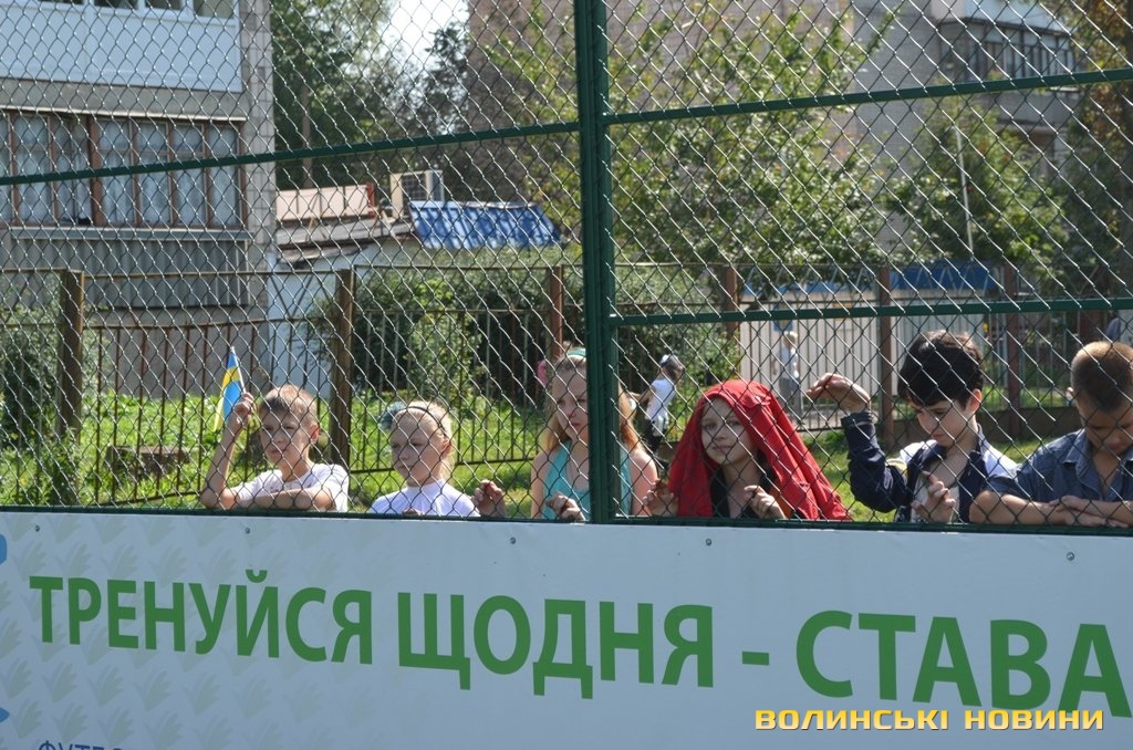 «Свято, хоча і затьмарене великим смутком і жалобою у Луцьку – ми прощаємося з героями «Айдару», нам сумно, що ці молоді люди своє життя поклали за мир і спокій в нашій державі, і тому ще більші зобов’язання на себе бере кожен з нас. Ми повинні своєю працею, своїм навчанням, своїм життям доводити, що пішли вони з життя недаремно, щоб Україна ставала сильною, впевненою, європейською державою. Не випадково гасло, яке розміщене на вашому полі – «Тренуйся щодня, ставай сильнішим». Бажаю бути сильнішими, здоровішими, успішними і в спорті, і в навчанні», - сказала заступник голови правління благодійного фонду Ірина Констанкевич.Задоволені новим спортивним полем учні 3-А класу ЗОШ №11 Дмитро та Владислав розповідають: «Ми любимо грати футбол, нам дуже подобається новий спортивний майданчик».«Тут можна не лише грати в футбол, а й вболівати за свою команду», – додає Владислав.