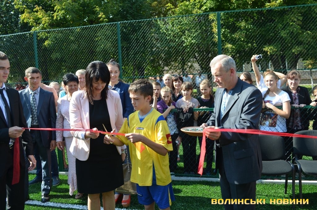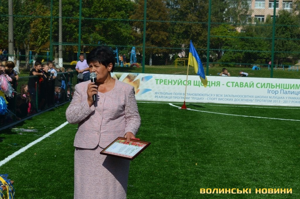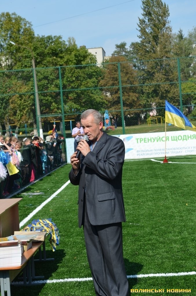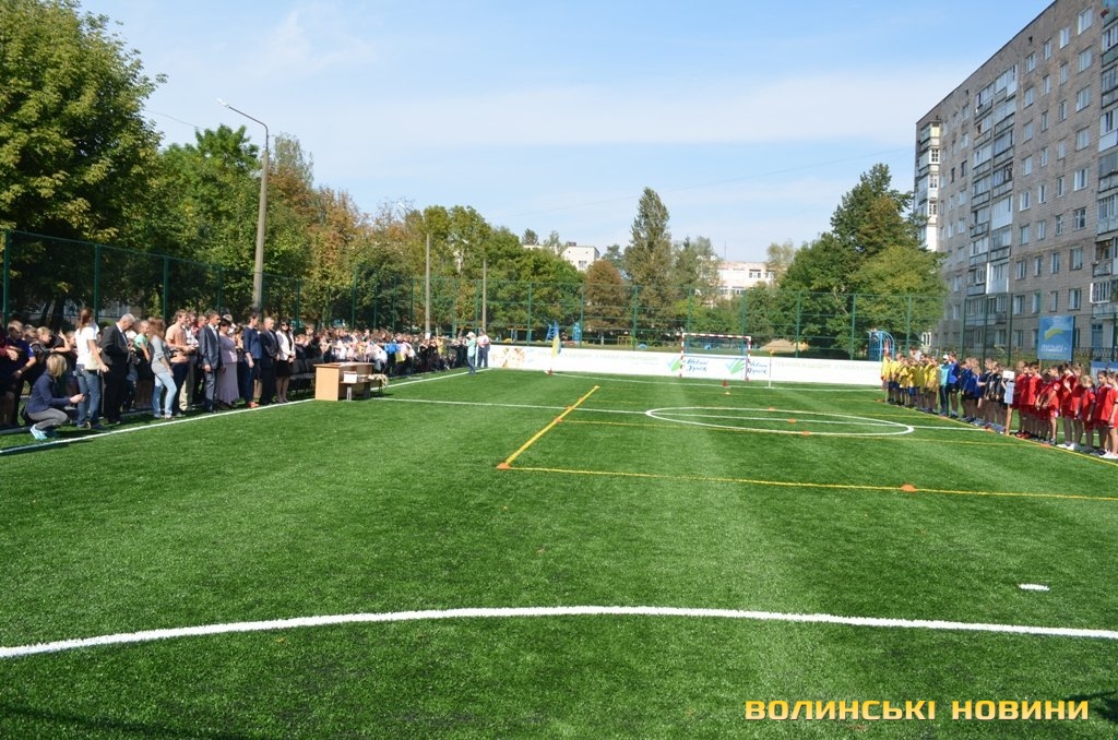 Урочисте відкриття та перерізання червоної стрічки доручили заступнику голови правління благодійного фонду «Фонд Ігоря Палиці – Новий Луцьк» Ірині Констанкевич.Цьогоріч для реалізації програми фонду «Луцьку – спорт високих досягнень» міні-футбольні поля зі штучним покриттям встановили у п’яти луцьких школах №№11, 14, 15, 17, 18. Вартість облаштування таких спортивних майданчиків – майже 2,8 млн грн. Всього ж Луцьк отримав від благодійників 10 міні-футбольних полів. Минулого року відкривали нові спортивні об’єкти школи №№ 2, 3, 12, 16, 23.
