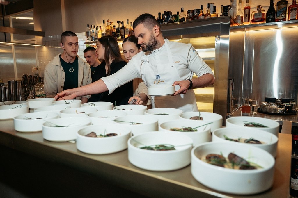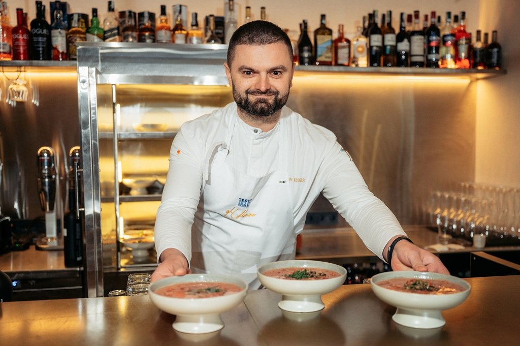 «Я приготував традиційний червоний борщ за рецептом з книги – на буряковому квасі. Але трішки довів до сучасного смаку – додав буряковий фреш і різноманітні овочі», – зазначив шеф-кухар misto.cafe.Шеф-бармен Андрій Аршулік подав до страви варенуху. Напій приготували за традиційною рецептурою – витриманий на суміші сухофруктів і теплий під час подачі.