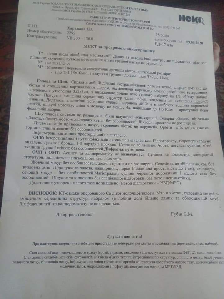Про це повідомляє у фейсбуці подруга хворої Анна Дудчик.