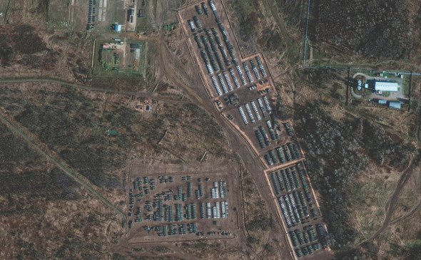 Знімки було зроблено у понеділок, 1 листопада, компанією Maxar Technologies, зазначає газета. На них, за даними видання, видно скупчення військової техніки, зокрема танків, поблизу міста Єльня Смоленської області (межує з Білорусією, від України відокремлюється лише Брянською областю).