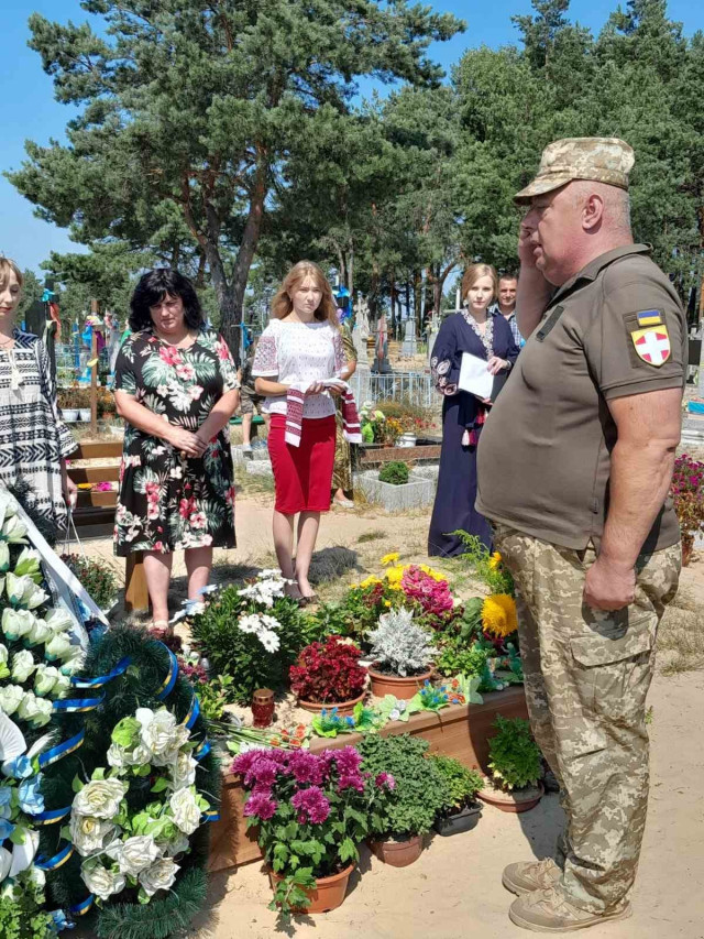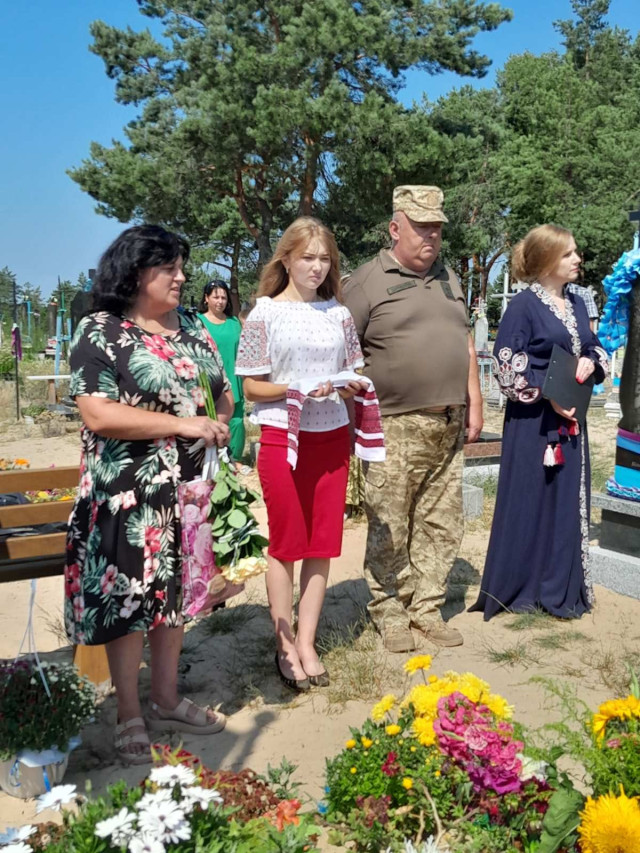 Кажуть, що Герої не вмирають, але, на жаль, їх все ж вбиває ворожа куля. Проте я впевнена, що ваш Захисник буде Ангелом та оберегом родини, Ангелом для побратимів на полі бою та захисником з неба святої землі України».Староста округу Людмила Чернусь подякувала рідним загиблого та побажала усім віри в мирне завтра.