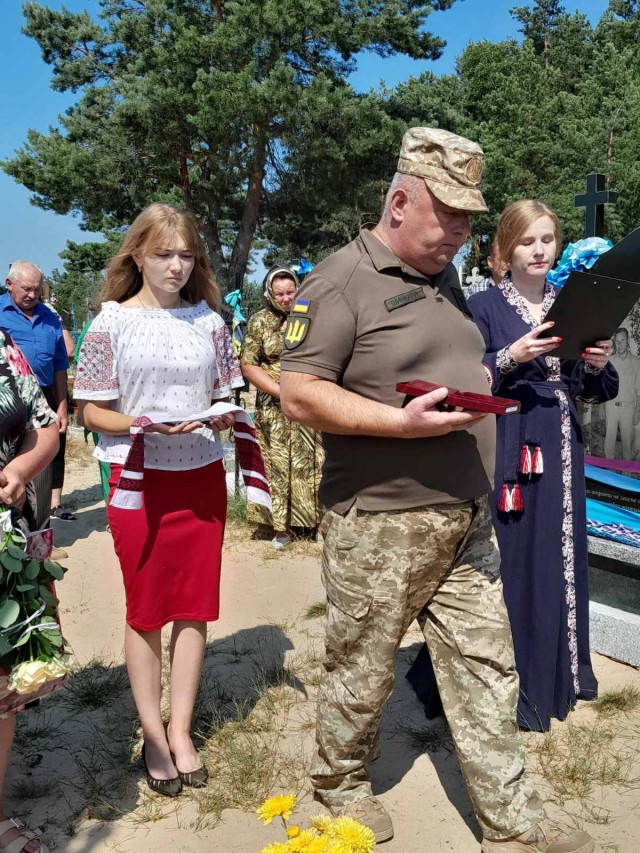 Почесну місію вручення нагороди дружині полеглого Захисника Оксані виконував начальник Другого відділу Ковельського районного територіального центру комплектування та соціальної підтримки підполковник Василь Шинкарук. Про це повідомили в Ратнівській селищній раді.