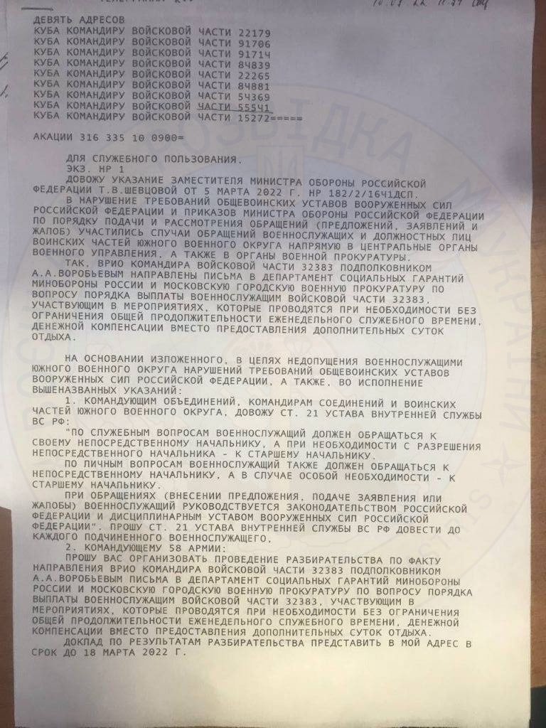 Документ підписаний заступником командувача південного військового округу Петром Гібертом.
