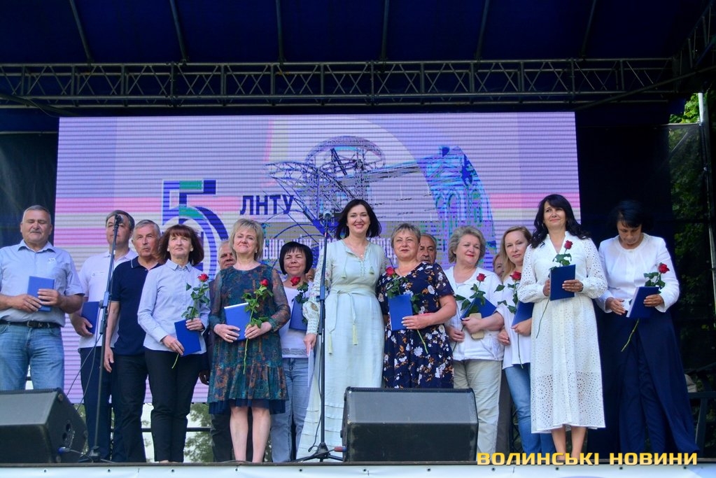 «Я щиро вас вітаю на території ЛНТУ. 55 років тому особисті авто були рідкістю, ніхто не уявляв, що можливо таке, як мобільні телефони. За цей час це все стало наших сьогоденням. Це зробив технічний розум. Ми як осередок технічного розуму на Волині вважаємо себе частиною того прогресу. Сьогодні ми маємо сім прекрасних факультетів. Дякую за внесок попереднім ректорам: Віктору Божидарніку та Петру Савчуку. Також рада вітати сьогодні випускників та студентів», – зазначила Ірина Вахович.Голова Волинської обласної ради Григорій Недопад також долучився до вітань університету, побажавши, щоб Луцький НТУ перетворився на політехніку.Опісля вітань працівникам університету на честь свята вручили відзнаки за їхню багаторічну працю. А продовжилося дійство святковим концертом.