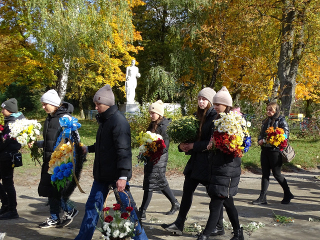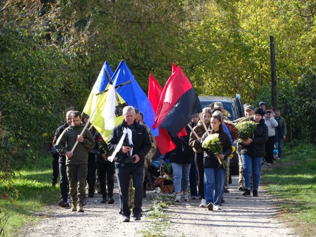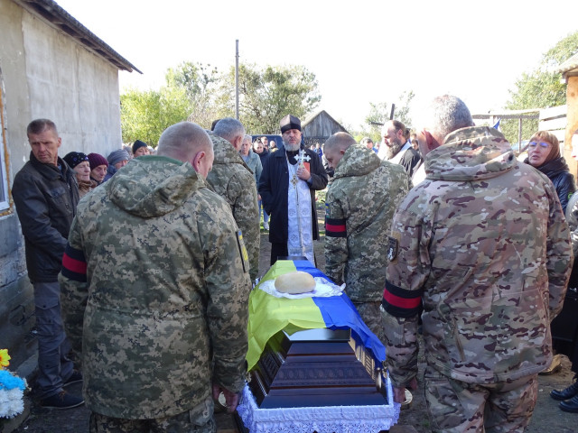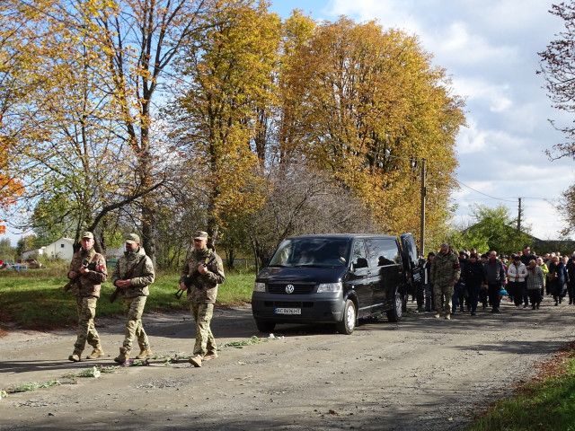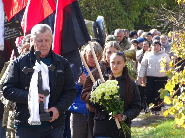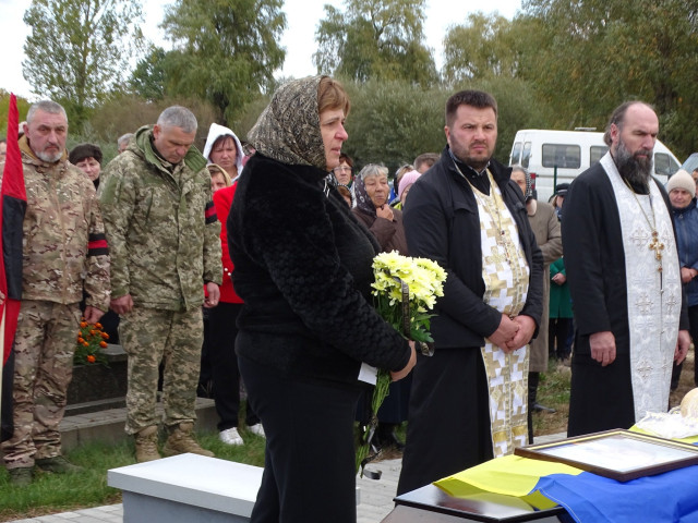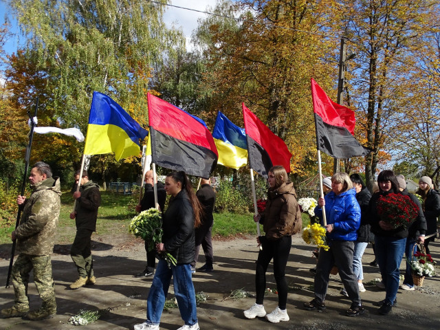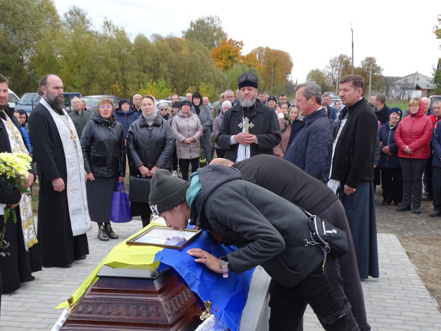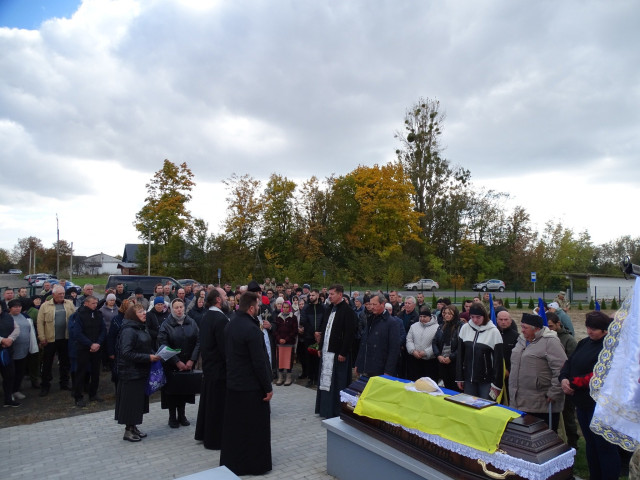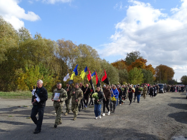 Під тихе шелестіння осіннього листя, під небом, оповитим смутком, розвивалися синьо-жовті та червоно-чорні прапори. На щиті устеленою осінніми квітами дорогою воїн назавжди повертався у рідне село. Траурний кортеж люди зустріли коридором шани на знак глибокої вдячності воїну за захист.