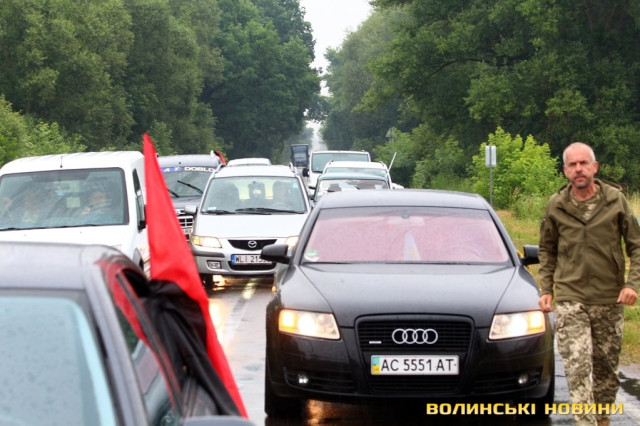 Зустрічали тіло Героя волонтери «Серце патріота» та Автомайдану 15 червня на Цуманському перехресті.