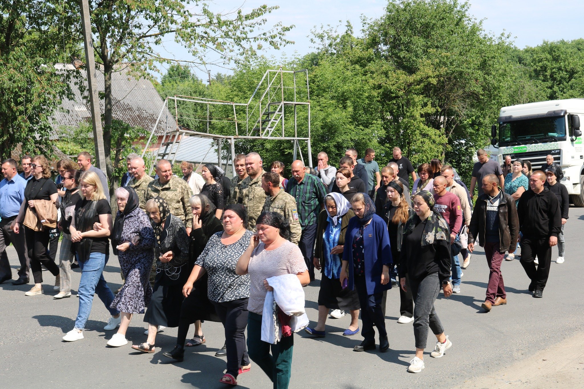 У рідному селі зустрічали воїна живим коридором, навколішки, встеляючи дорогу квітами. Віддали останню шану Герою, який поклав життя за Україну, сотні людей: рідні, близькі, знайомі, побратими, військовослужбовці та жителі громади.