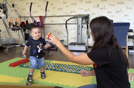 «Хлопчик досяг віку, коли мав самостійно вставати біля опори, однак зробити цього не міг, адже зовсім не опирався на ліву ніжку. Із цією проблемою розпочали роботу фізичні терапевти, які наполегливо навчали його стояти на нозі – попри небажання та плач маленького хлопчика. Саме ці спеціалісти доклали колосальних зусиль для того, щоб Давид самостійно ходив. Спочатку навчили стояти біля опори на двох ногах, далі – ходити біля опори. Останній курс реабілітації в катамнезі завершився тим, що хлопчик сам вставав та стояв біля опори. Також навчився стояти, не тримаючись за опору», – розповідає лікарка фізичної та реабілітаційної медицини Марія Шевчук.