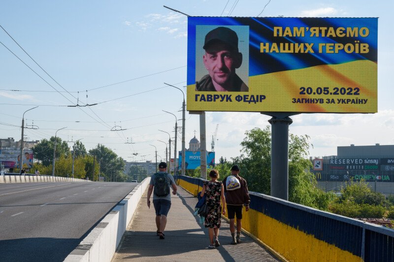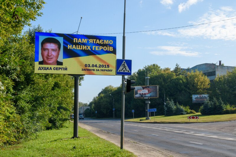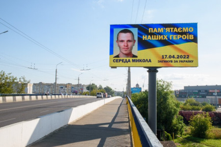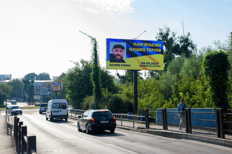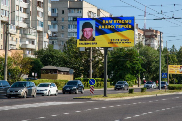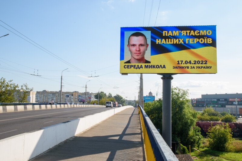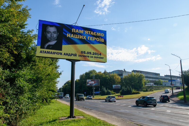 У Луцьку з нагоди Дня Незалежності України на рекламних бордах розмістили світлини мешканців громади, які віддали своє життя за Україну.