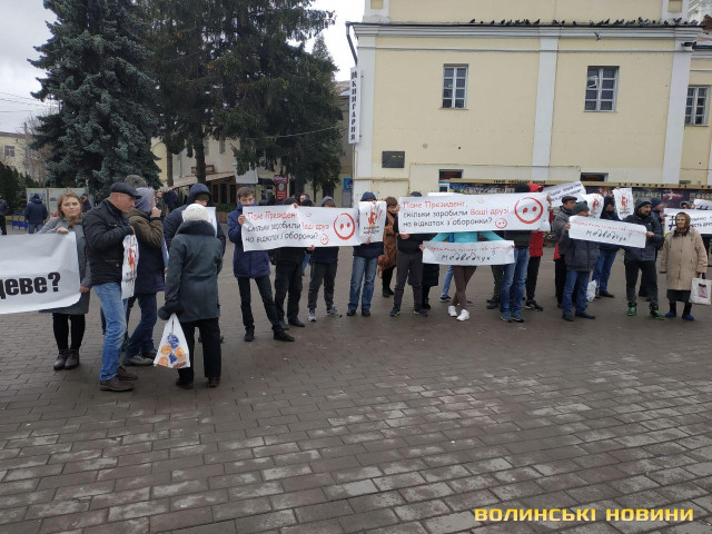 Нагадаємо, днем раніше в Луцьку з'явився величезний банер зі словами «Ти став президентом на крові хлопців 51 ОМБР. Щоб сховати свої злочини, твої генерали її знищили. Волинь такого не пробачає» та білборди з фразою «Зустрінь весну без пороху! Дай шанс своїй країні!».