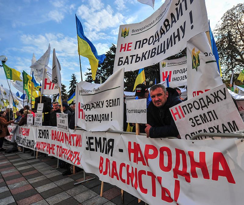 Тим часом під радою зібрались сотні українців з вимогою переглянути законопроєкт та не впроваджувати ринок землі в тому вигляді, в якому його прийняли в першому читанні.