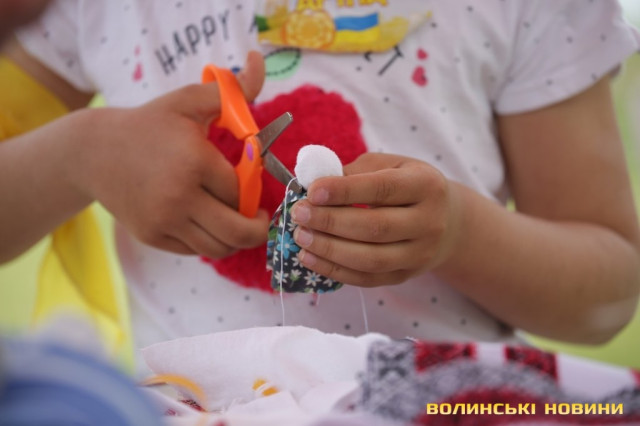 «У нашій команді понад 50 волонтерів. Ми вже маємо власний офіс. Щоденно ми проводимо різні майстер-класи, заходи. Спорт, танці, арт-терапія – це далеко не весь перелік того, чим ми займаємось. Щотижня ми урізноманітнюємо наші програму. Ми активні, намагаємось урізноманітнювати життя, підтримувати дітей, батьків. Все, що ми проводимо – безкоштовно. Вікових обмежень у нас немає. До нас приходять бабусі, дідусі, батьки разом з дітками. Наприклад, сьогодні ми проводимо майстер-клас із виготовлення листівок для українських бійців. Згодом усі ці листівки поїдуть до наших військових», – розповідає дівчина.Окрім листівок для захисників, гості заходу мали змогу виготовити власний оберіг – ляльку-мотанку. Майстер-клас із виготовлення автентичних іграшок провела працівниця Волинської обласної бібліотеки для юнацтва Оксана Коба.