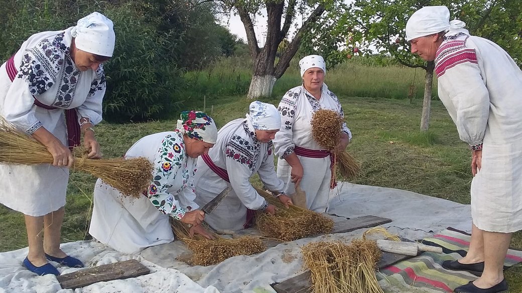 Виготовлення ниток з льону та спосіб фарбування у природних барвниках в Рівненській громаді.