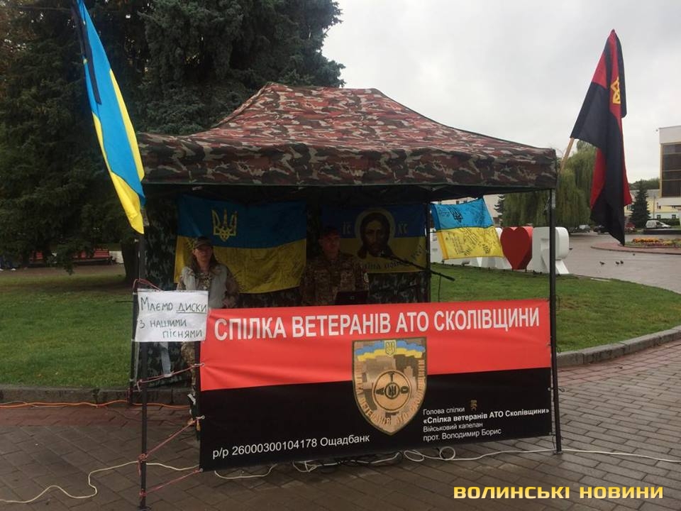 Так, декілька днів поспіль у центрі Луцька стоїть палатка, з якої гучно лунають українські пісні. Окрім того, на палатці вивісили плакат з написом «Спілка ветеранів АТО Сколівщини». Тож, Інформаційне агентство Волинські Новини вирішило поцікавитися метою їхнього перебування у Луцьку.