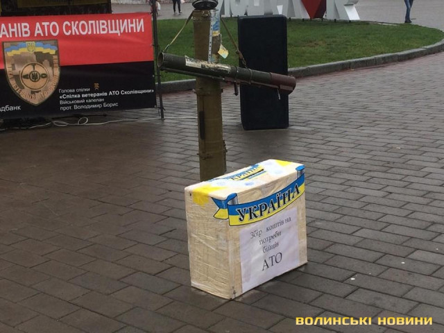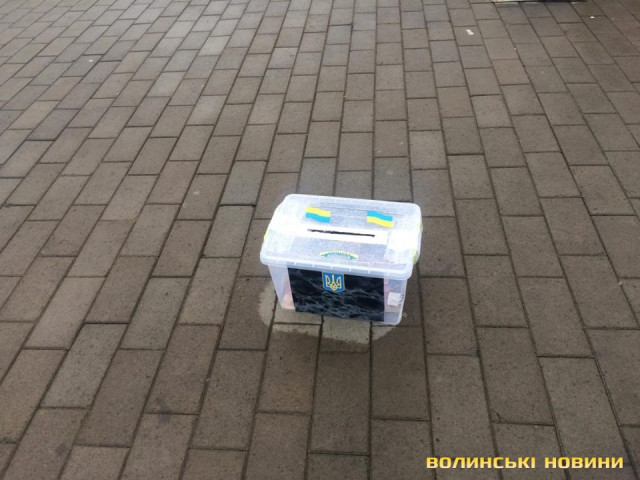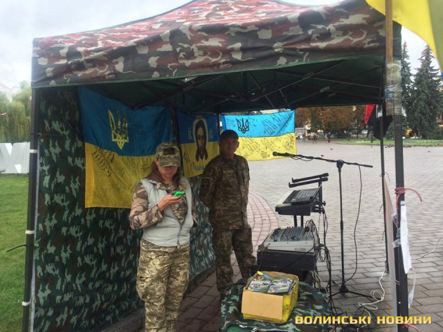 У центрі Луцька біля стенду Героям Небесної Сотні волонтери зі Львівщини збирають гроші на потреби воїнів АТО.
