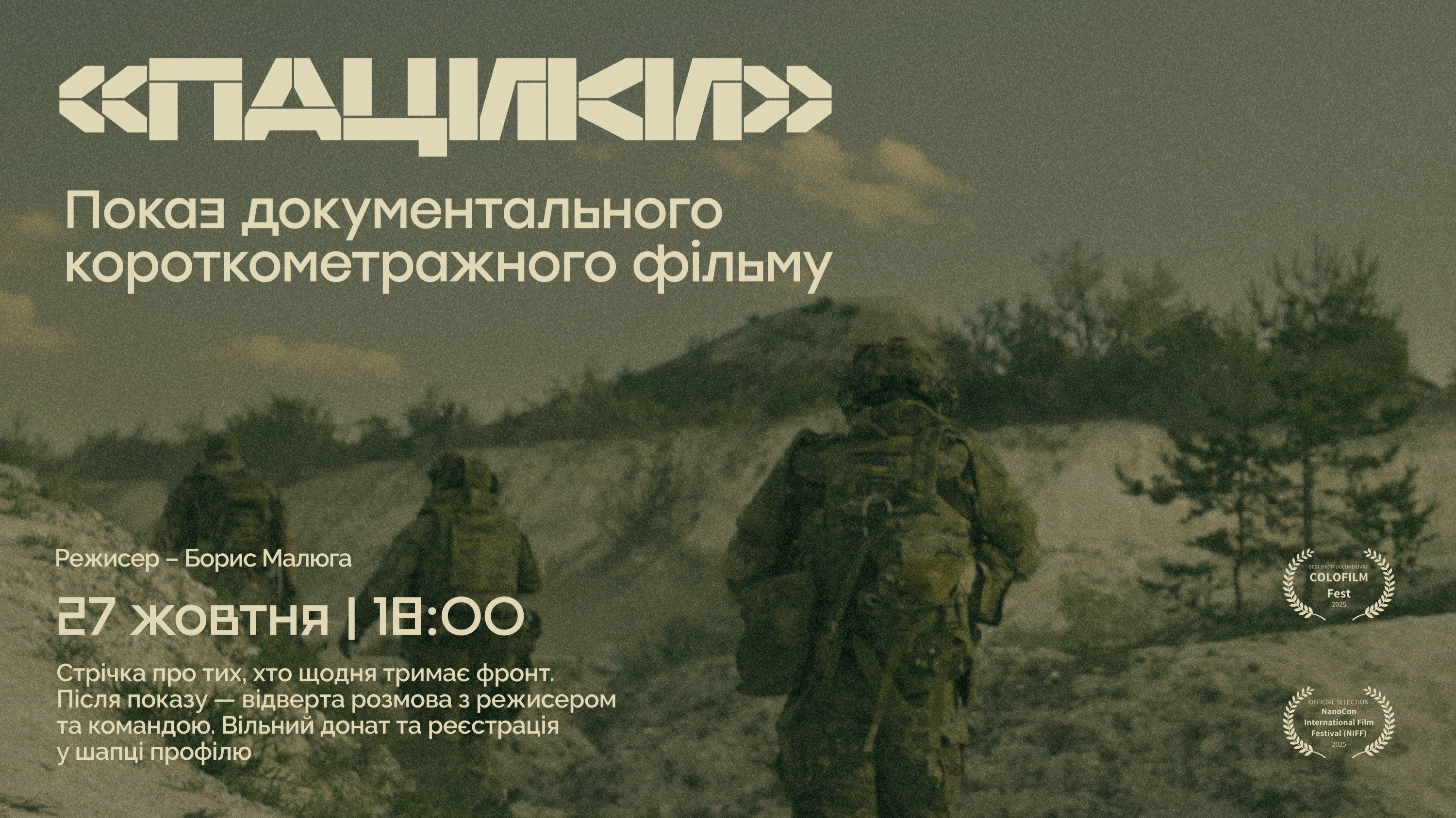 Після перегляду – розмова режисера «Пациків» Бориса Малюги з Олександром Стеренчуком, режисером фільму «Крила», а також благодійний аукціон від команди стрічки «Пацики».