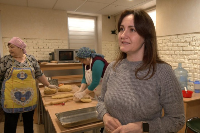 Ніна Чумак – з Енергодара Запорізької області. Відколи місто окуповане, а це майже три роки, жінка живе у Луцьку. Півтора року готує на церковній кухні.«Пекли печиво, хлопцям сподобалося з варенням. Можливо, воно їм дім нагадує, бо мені здається, що цей пиріг в кожній сім’ї пекли і він нагадує смак дитинства. Мене сюди привела Валя з Краматорська, переселенка», – каже Ніна Чумак.