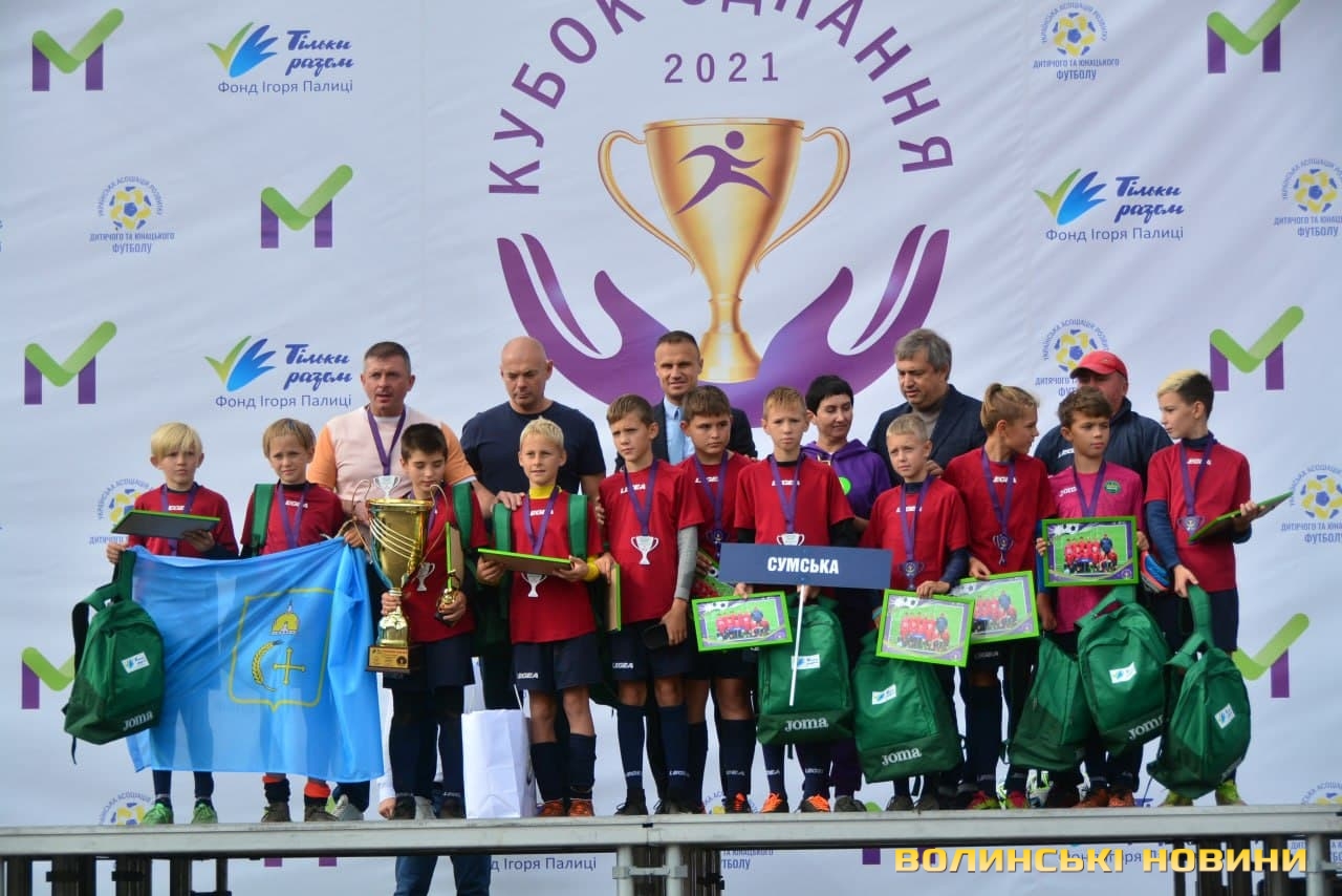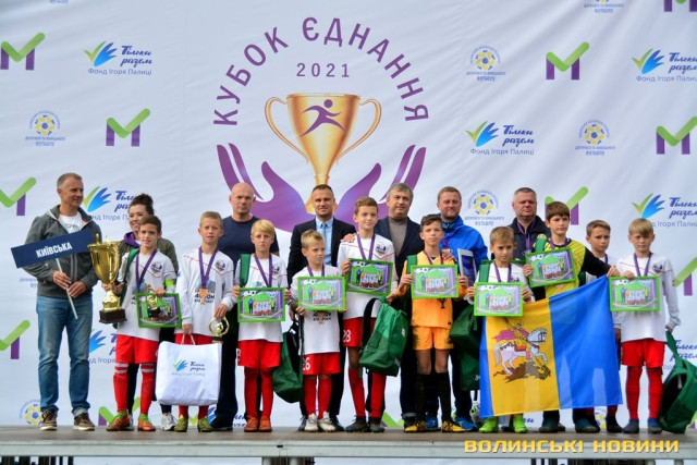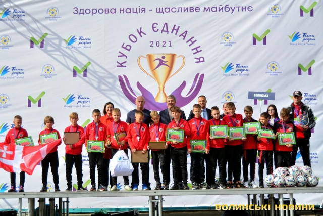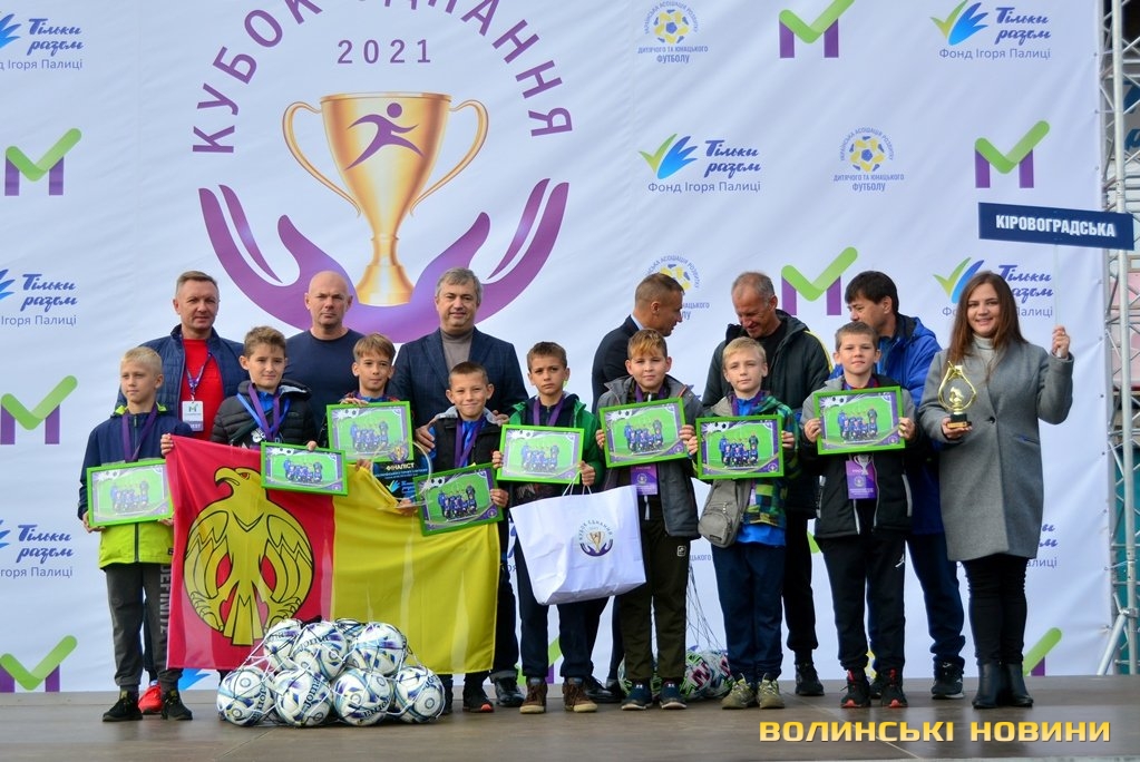 В обласному центрі Волині нагородили переможців фінального етапу наймасштабнішого футбольного турніру в Україні «Кубок єднання-2021» серед хлопчиків 2010-2011 року народження, який присвячений 10-річчю Фонду Ігоря Палиці «Тільки разом».