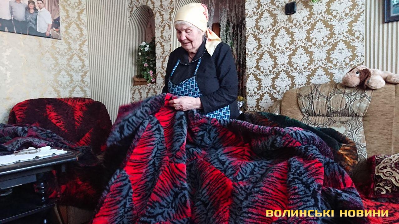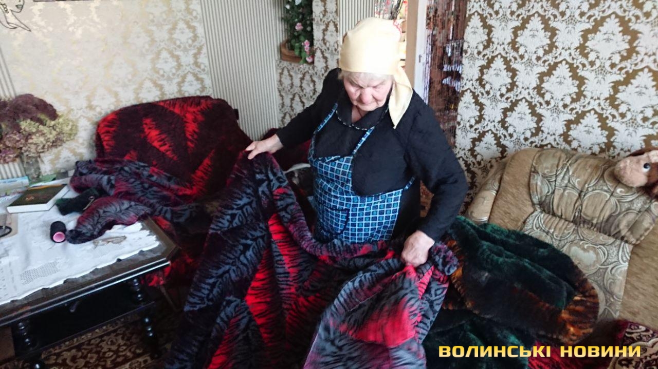 Людмила Ніженець – 85-річна жителька селища Благодатне, що поблизу Нововолинська, шиє бійцям ООС. Ковдри, пошиті бабусею, солдати називають оберегами, бо вважають, що вони заряджені теплом та любов’ю.