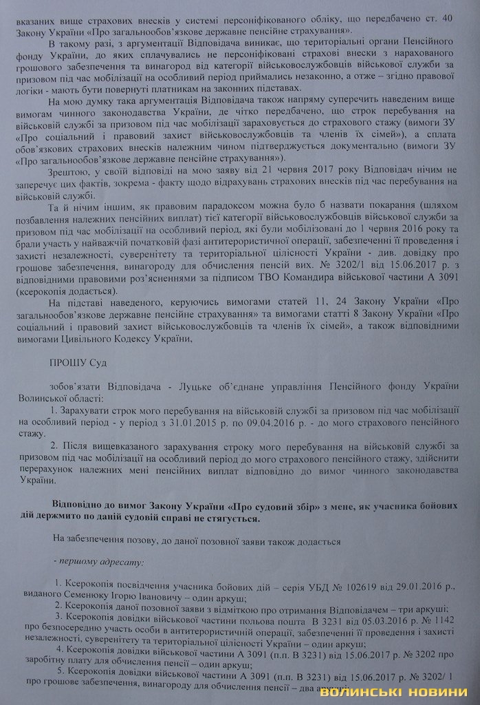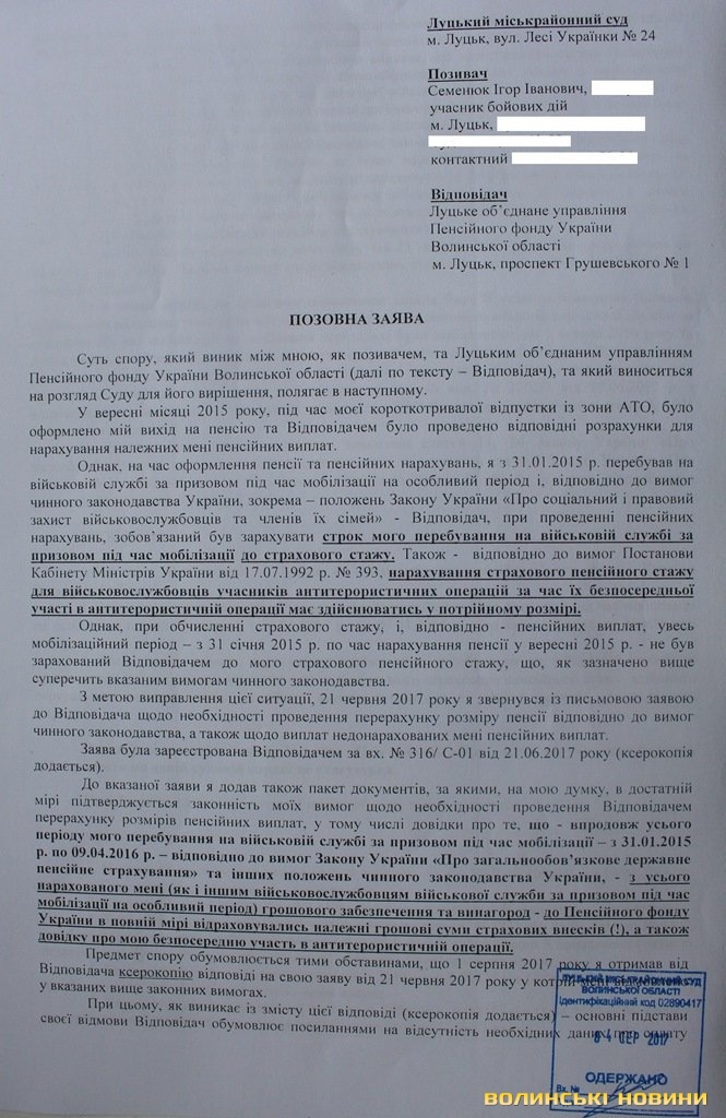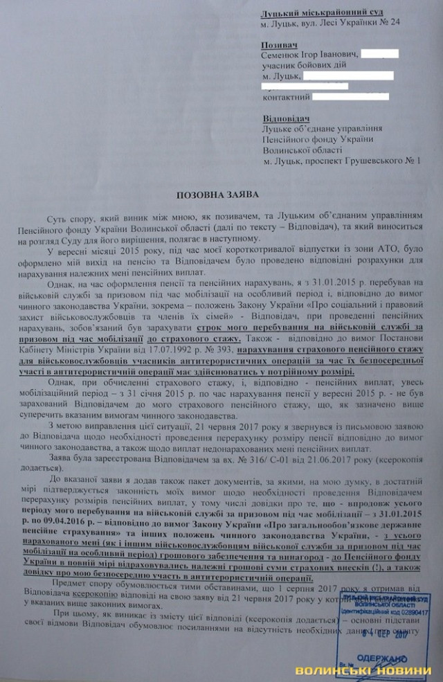 Тому Ігор Семенюк звернувся в Луцький міськрайонний суд з вимогою зобов’язати Луцьке об’єднане управління Пенсійного фонду України Волинської області: