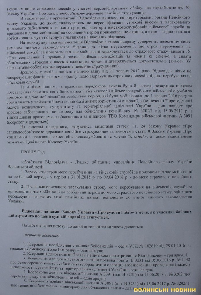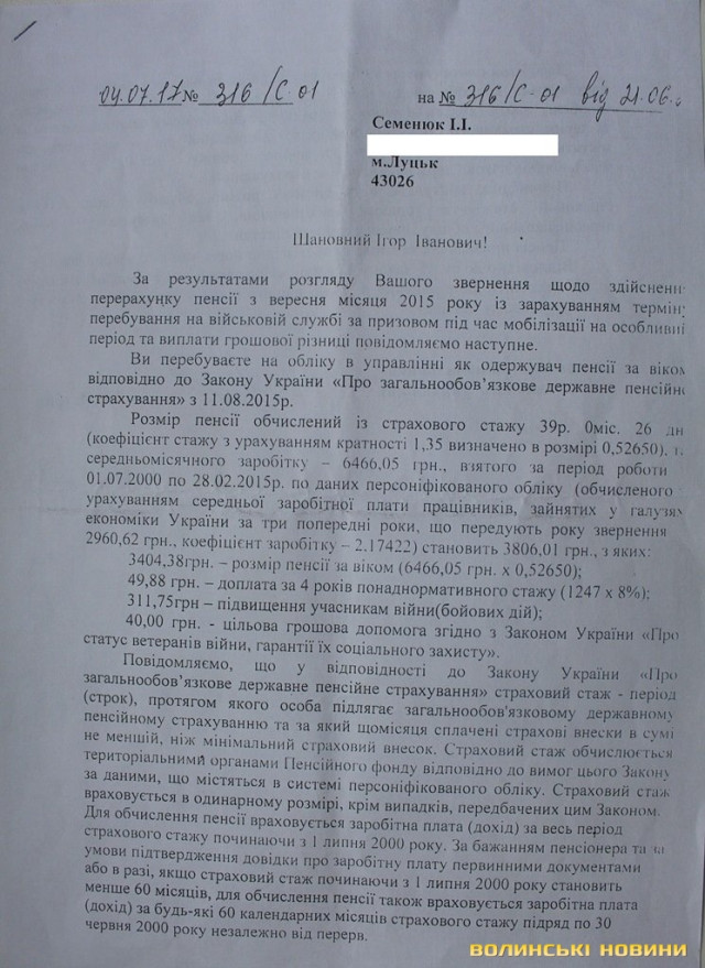 У редакцію Інформаційного агентства Волинські Новини звернувся Ігор Семенюк та розповів, що коли вийшов на пенсію та почав оформлювати необхідну документацію, то виявилося, що Пенсійний фонд не хоче враховувати період, коли його мобілізували.
