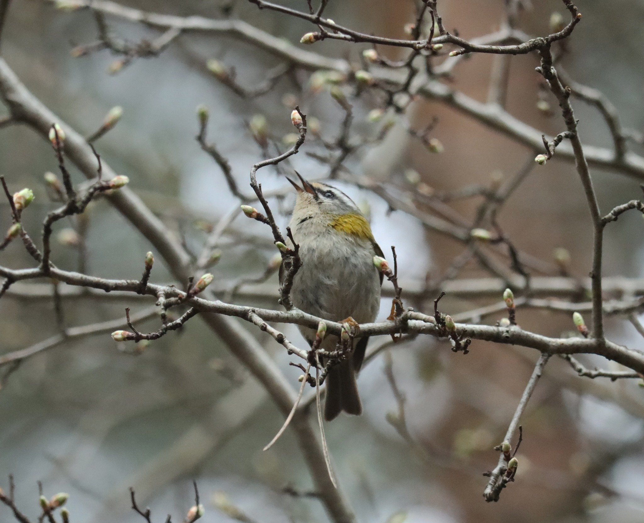 Спостерігати цього птаха досить складно: золотомушка постійно рухається та перелітає з місця на місце, не затримуючись надовго.
