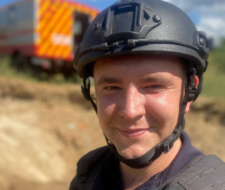 26-річний старший лейтенант служби цивільного захисту Андрій Романчук – начальник відділення піротехнічних робіт групи піротехнічних робіт АРЗ СП ДСНС України у Волинській області.