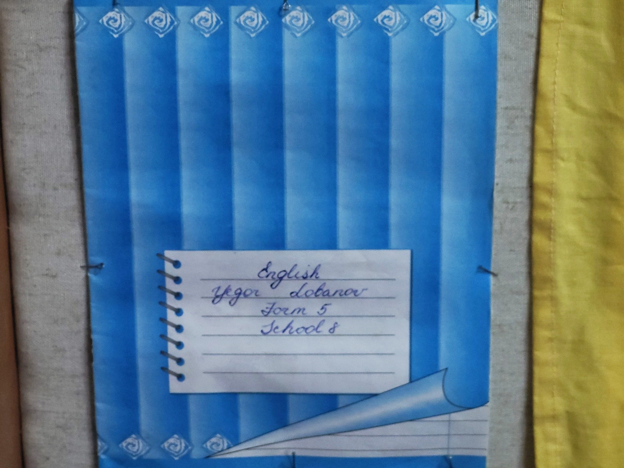 На виставці є шкільний зошит для контрольних робіт з англійської мови учня 5-го класу ЗОШ № 8 (нині ліцей «Оберіг») Єгора Лобанова.