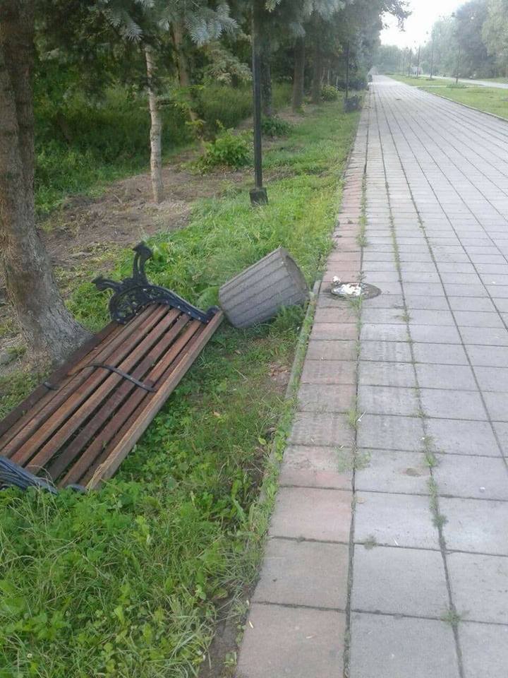 Перекинуті лавки і смітники, вирвані квіти: вандали понищили центральну алею у парку