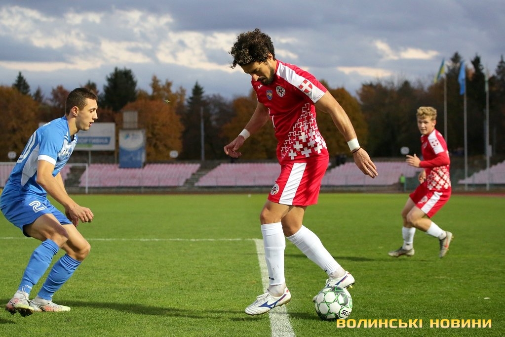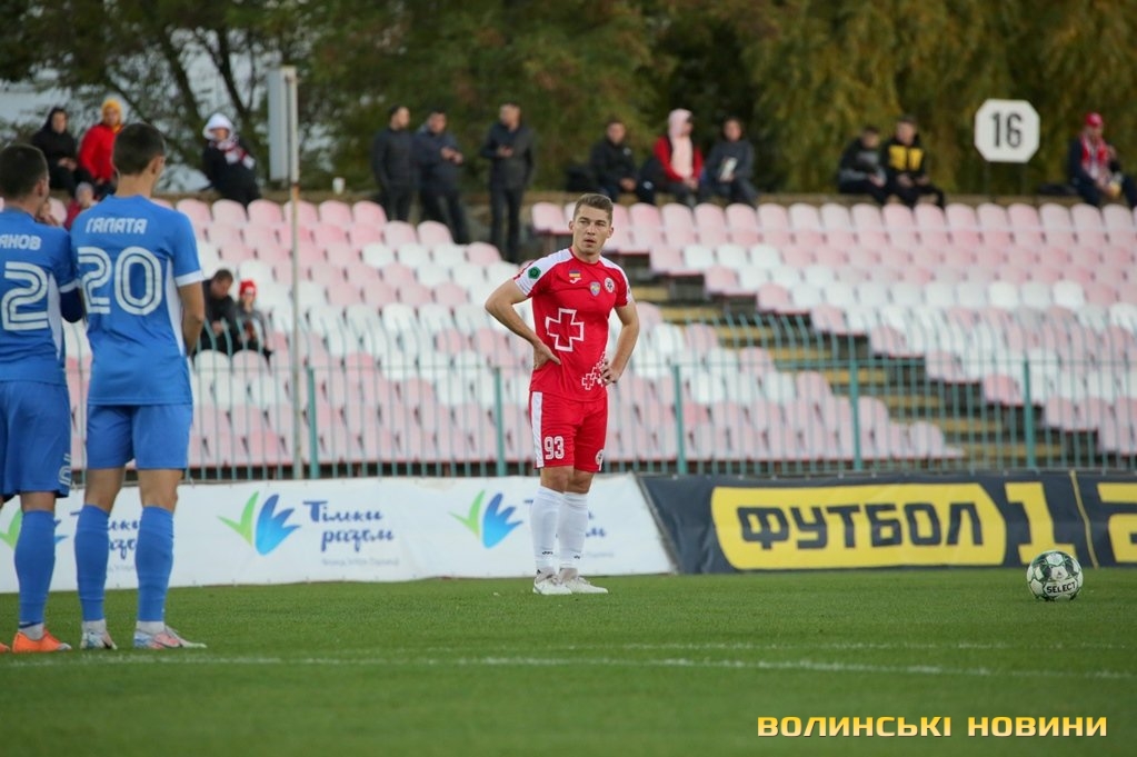 А на 13 хвилині «Волинь» відкрила рахунок: Цюпа непогано виконав штрафний, але влучив у стійку від якої м’яч відлетів у голкіпера Даніїла Єрмолова, а тоді у ворота – 1:0.Проте «Волинь» святкувала недовго: на 16 хвилині Галат отримав розрізний пас з середини поля та після провалу центру захисту лучан поцілив у кут воріт Неділька – 1:1.