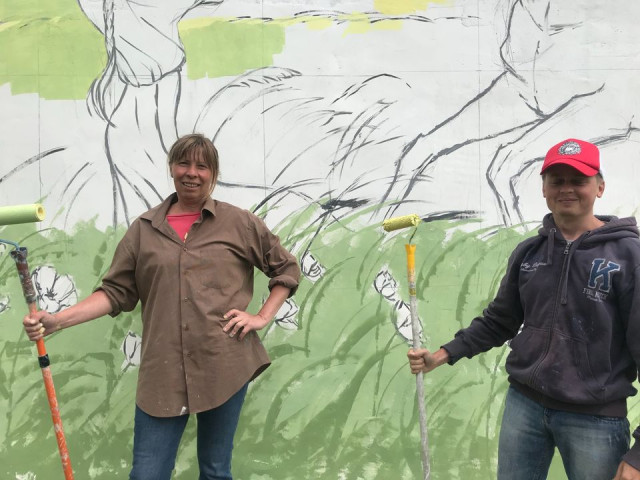 Переселенець з Харківщини разом з волинянкою створюють патріотичний мурал