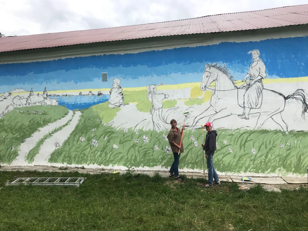 Переселенець з Харківщини разом з волинянкою створюють патріотичний мурал