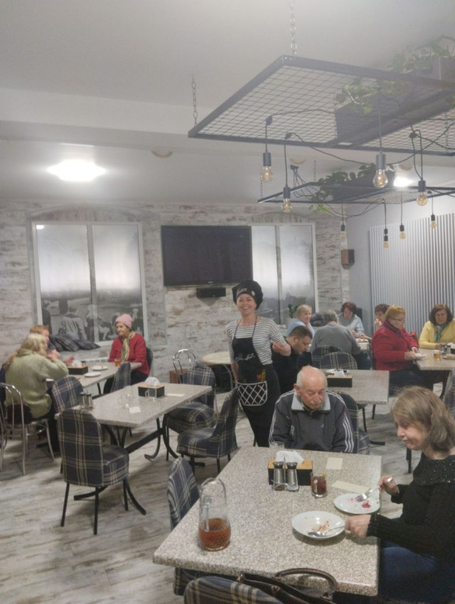 Зараз тут безплатно їдять біля 18-30 ВПО з різних регіонів України, й їхня кількість постійно збільшується. Зазвичай сюди приходять старші люди, багато з них – мешканці Херсона, Харкова і Луганщини.