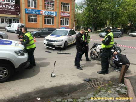 Сьогодні вдень у Луцьку на проспекті Відродження сталася ДТП за участю мотоцикліста та автомобіля поліції.