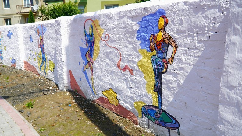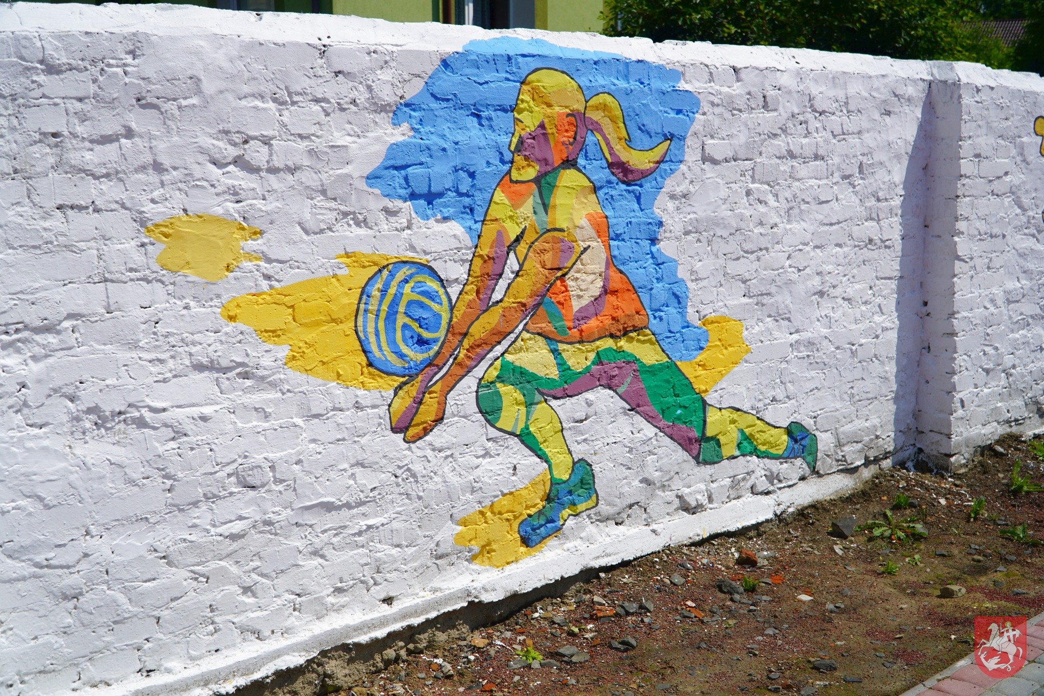 Студенти розмальовували паркан під час проходження пленерної практики під керівництвом Валентини Залуніної. Впродовж двох тижнів на кожній секції паркану з’являвся новий малюнок на спортивну тематику.