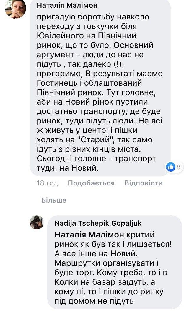 Проведіть нормальне опитування, а не з пальця висмоктане... На старий ринок їздило багато пенсіонерів, бо дешевше і тролейбусом можна доїхати. Але навіщо думати про тих старих...