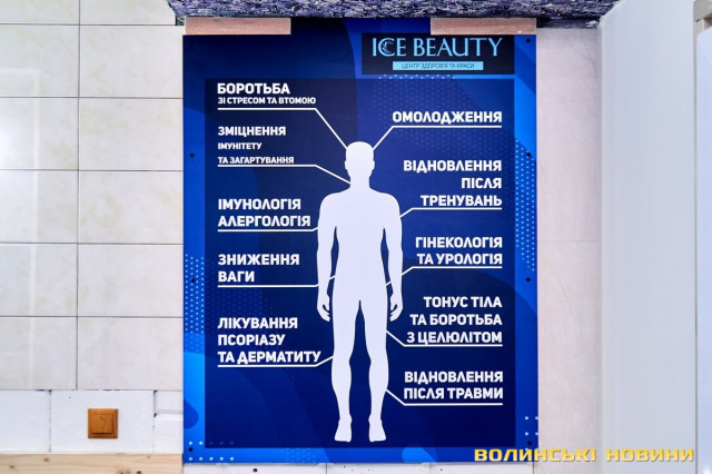 У Луцьку на вулиці Винниченка 15 грудня відкрився новий унікальний оздоровлювальний заклад – Центр здоров’я та краси Ice Beauty. Унікальний він насамперед сучасною потужною кріосауною – першою і єдиною в Луцьку й на Волині.