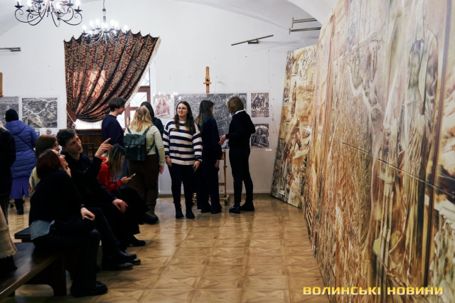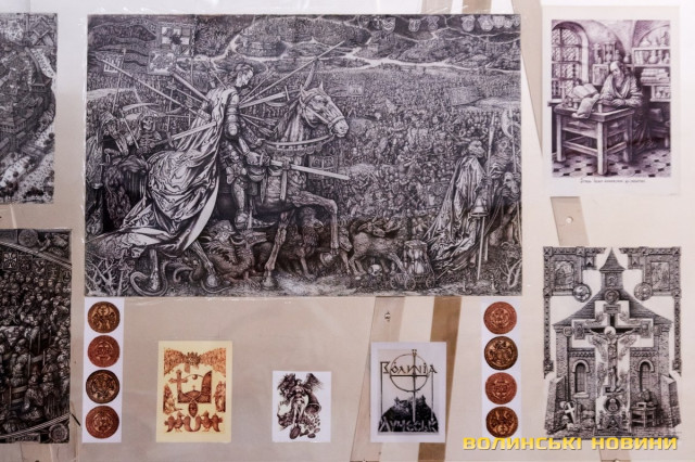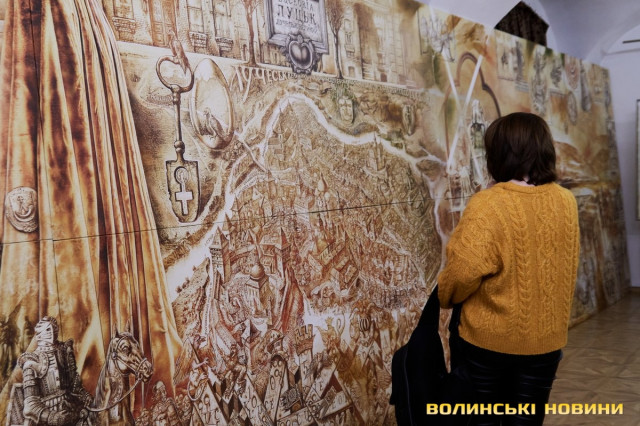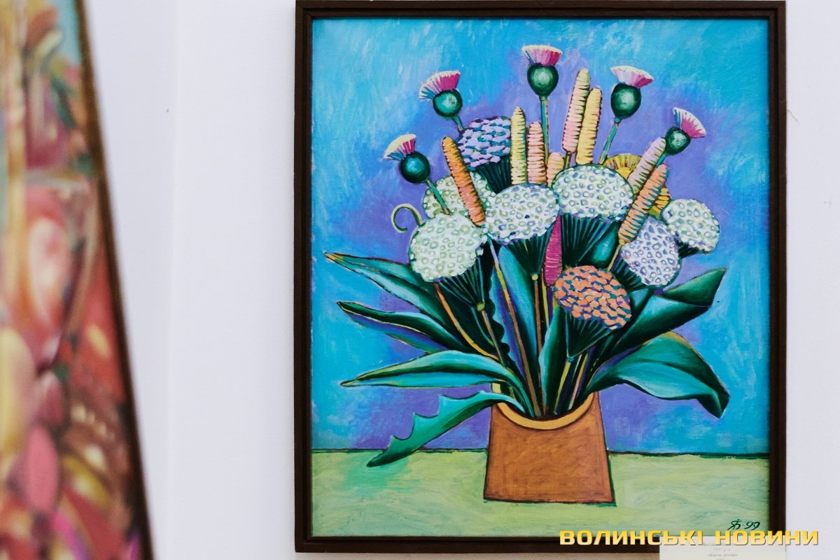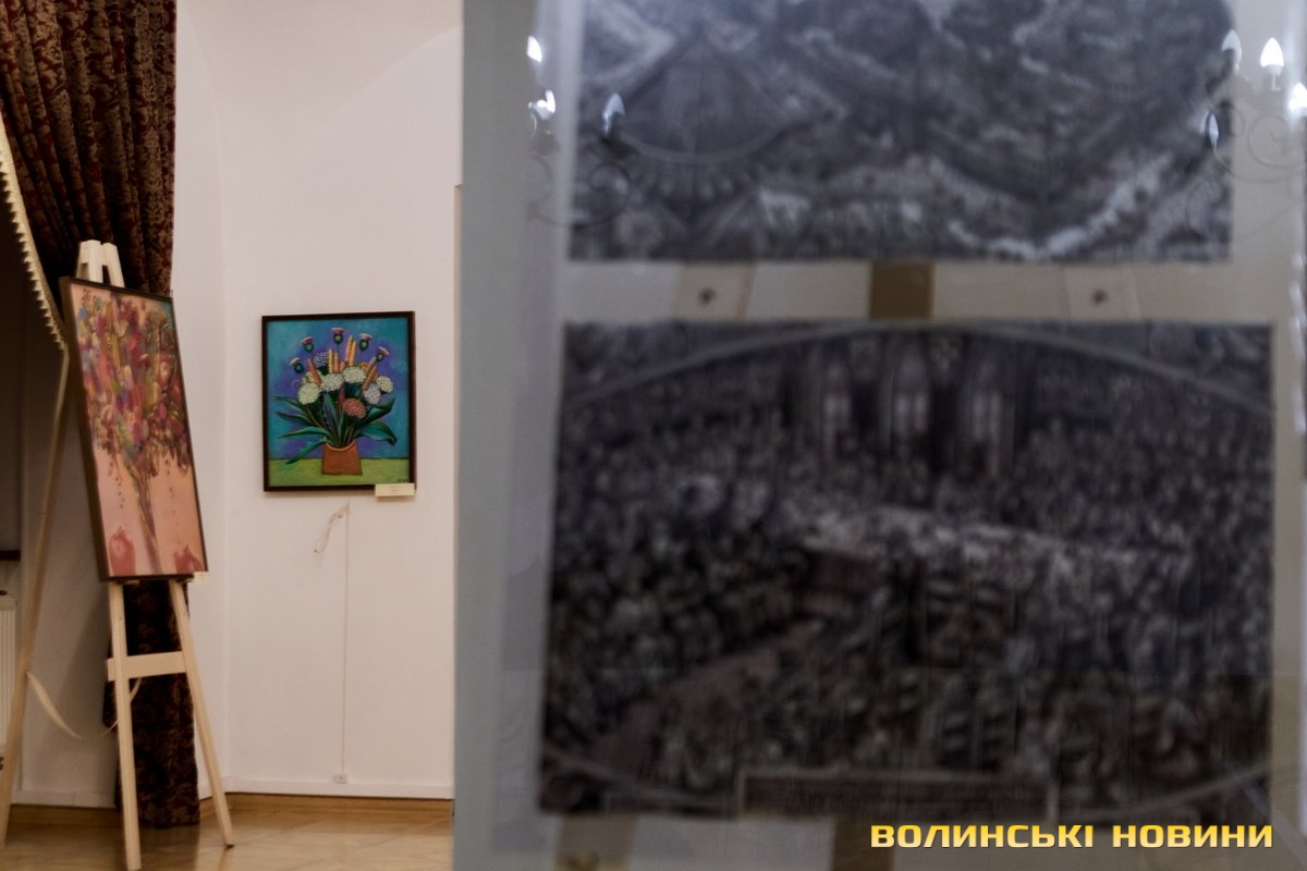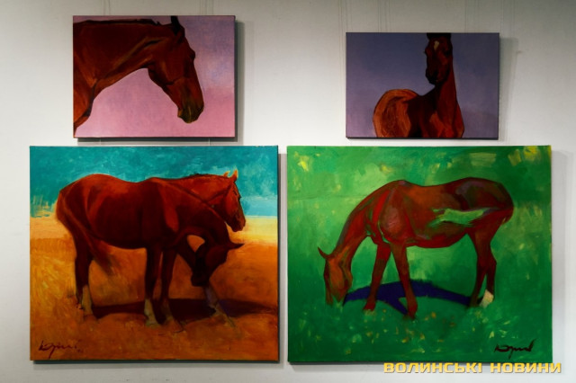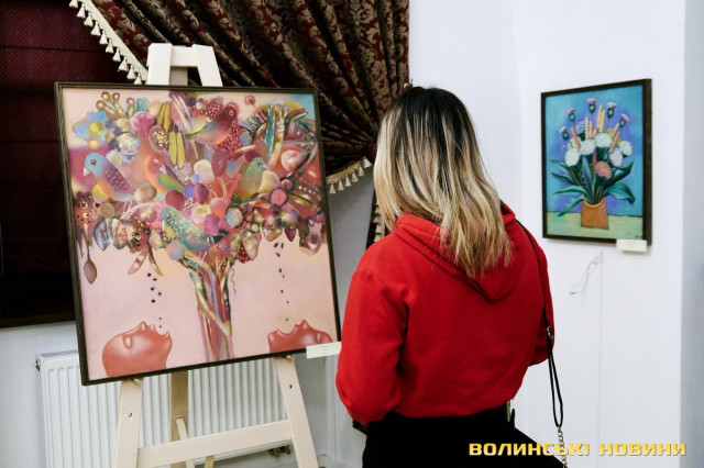 «Сьогодні прийшов час нової виставки. На тлі війни ми все ж вирішили відзначити нашу велику дату. Тут представлено роботи відомих художників Луцька: Богдана Ясинського, Елеонори Сабової-Дишко, Олександра Дишка, Наталі Кумановської, Сергія Корсая, Геннадія Юр'єва. Вони можуть дискутувати один з одним, суперечити один одному, зчинити протистояння… Але їх пов’язує надзвичайно відповідальне ставлення до творчості. Кожен із цих художників володіє своїми образами, своїми улюбленими темами, які по-своєму творять метафори. І ця тема об’єднує абсолютно неподібних між собою людей. Кожен з них має свою концепцію, але вони вже сьогодні витворюють мистецьке обличчя Луцька та України», – звернулася до гостей директорка музею Зоя Навроцька.«Тут представлені твори різних часів. Від кінця 90-х до 2000-х. Є анімалістика, історичні полотна, натюрморти зі звичайних побутових предметів, портрети. Загалом майже сотня робіт. Їх об’єднує надзвичайно тонке відчуття, глибокі думки, поетичне осмислення теми, бездоганне володіння пензлем. Виставка діятиме до травня, тому запрошуємо усіх охочих», – підкреслила Зоя Навроцька.Читати ще: 150 тисяч гривень для ЗСУ: на аукціоні у луцькому музеї продавали картини з найбільшого полотна у світі. Фото